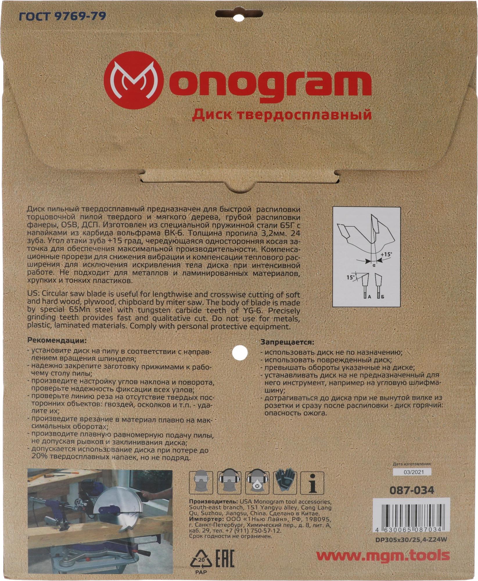 Диск пильный по дер. Monogram 086-945 d=250мм d(посад.)=32мм (циркулярные пилы) (упак.:1шт)