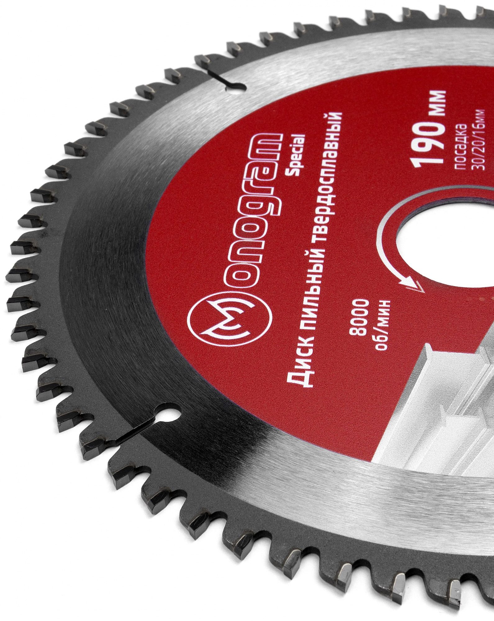 Диск пильный твердосплавный Special MONOGRAM предназначен для аккуратной распиловки циркулярной пилой алюминиевого профиля, листа, ламинированных ДСП, тонких пластиков. Изготовлен из специальной пружинной стали 65Г с напайками из карбида вольфрама ВК-8. Угол атаки зуба -5°.