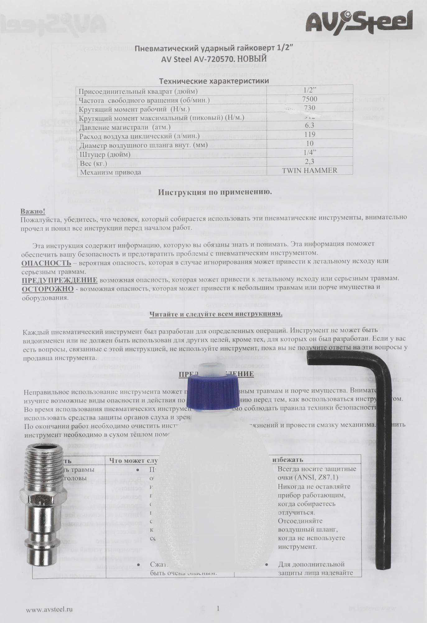 Пневмогайковерт AV Steel 1/2" 570Нм AV-720570 предназначен для работы с резьбовым крепежом. Эргономичная рукоятка с накладкой обеспечивает надежный хват, за счет чего достигается удобство работы. Небольшие габариты инструмента позволяют выполнять задачи в труднодоступных местах.