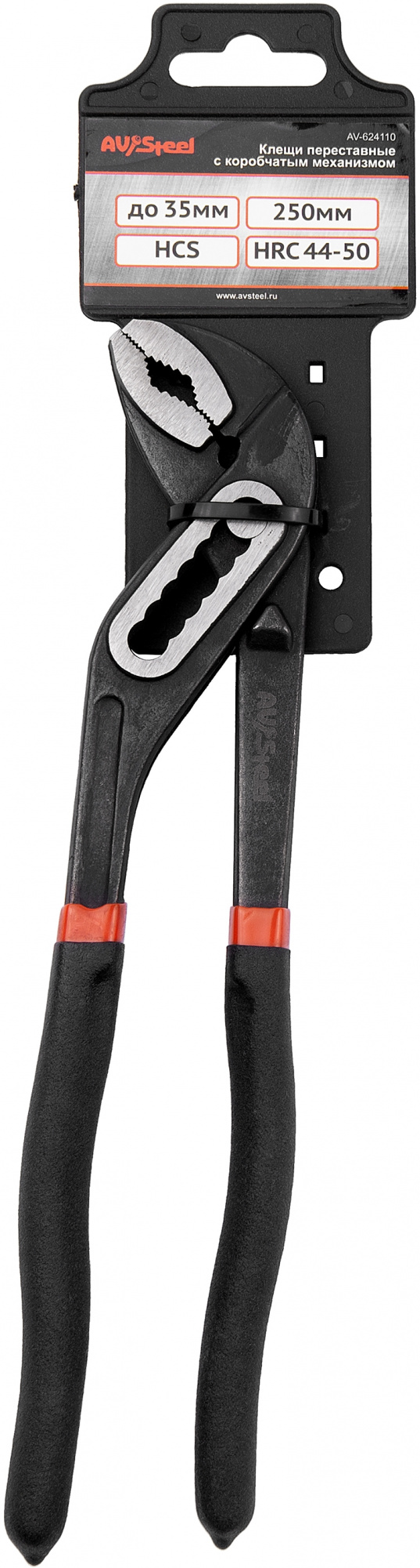 Переставные клещи AV Steel с коробчатым механизмом изготовлены из углеродистой стали. Модель подходит для работ с крепежом различного размера, максимальный захват равен 35 мм. За счет длины рукояток можно развить хорошую силу сжатия.