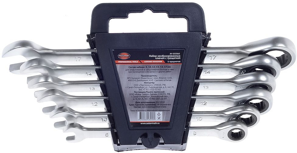 Набор ключей комбинированных трещоточных 8-17 мм."AV Steel" 6 предм.