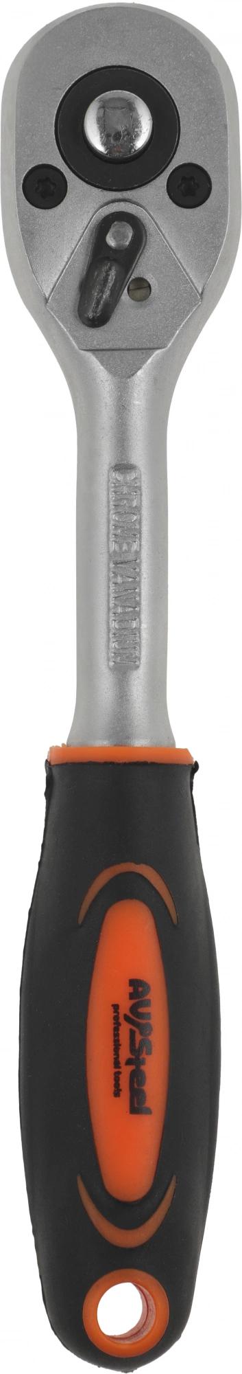 Трещотка AV Steel 1/4" 45-зубца 155 мм. с двухкомпонентной ручкой предназначена для быстрого закручивания или откручивания гаек. 45-зубцовый механизм привода трещотки позволяет осуществлять переход в 8°.