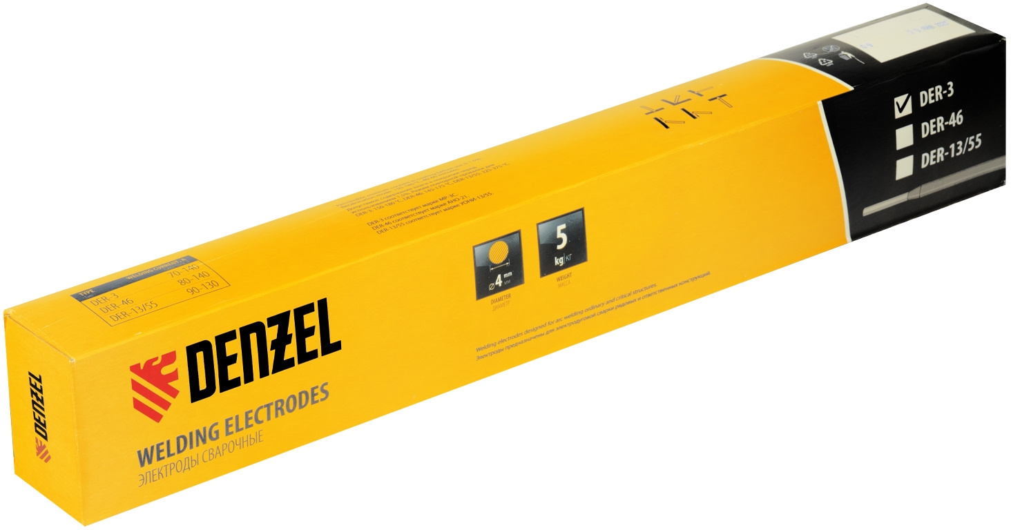 Электроды Denzel DER-3 97513 диаметром 4 мм., с рутиловым покрытием, 5 кг в упаковке, предназначены для ручной дуговой сварки деталей из углеродистых сталей при максимальном токе 160 А. Подходят для заготовок толщиной 3-5 мм. Электроды пригодятся для сварочных работ в гараже, мастерской или на даче.