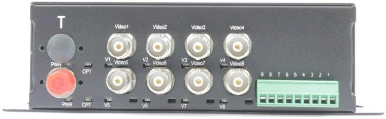 Оптический передатчик 8 каналов видео HDCVI/HDTVI/AHD/CVBS и 1 двунаправленного канала управления (RS485/полудуплекс) по одномодовому оптоволокну до 20км. Максимальное разрешение 2560x1920. Входы: роз. 2.1х5мм; FC (UPC) x 1 Выходы: клеммная колодка (RS485) BNC x 8.