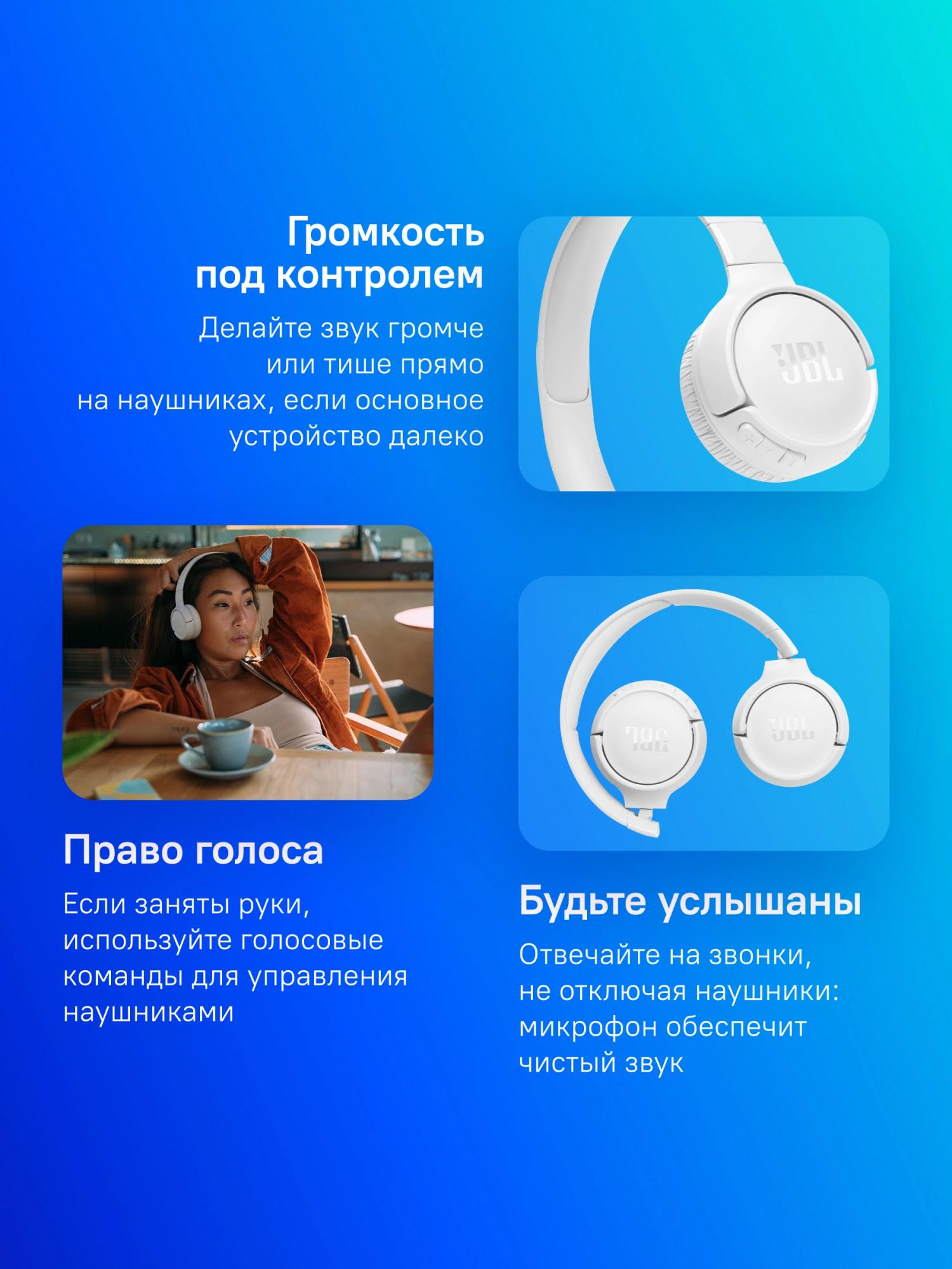 Гарнитура накладные JBL Tune 520BT белый беспроводные bluetooth оголовье (JBLT520BTWHT)