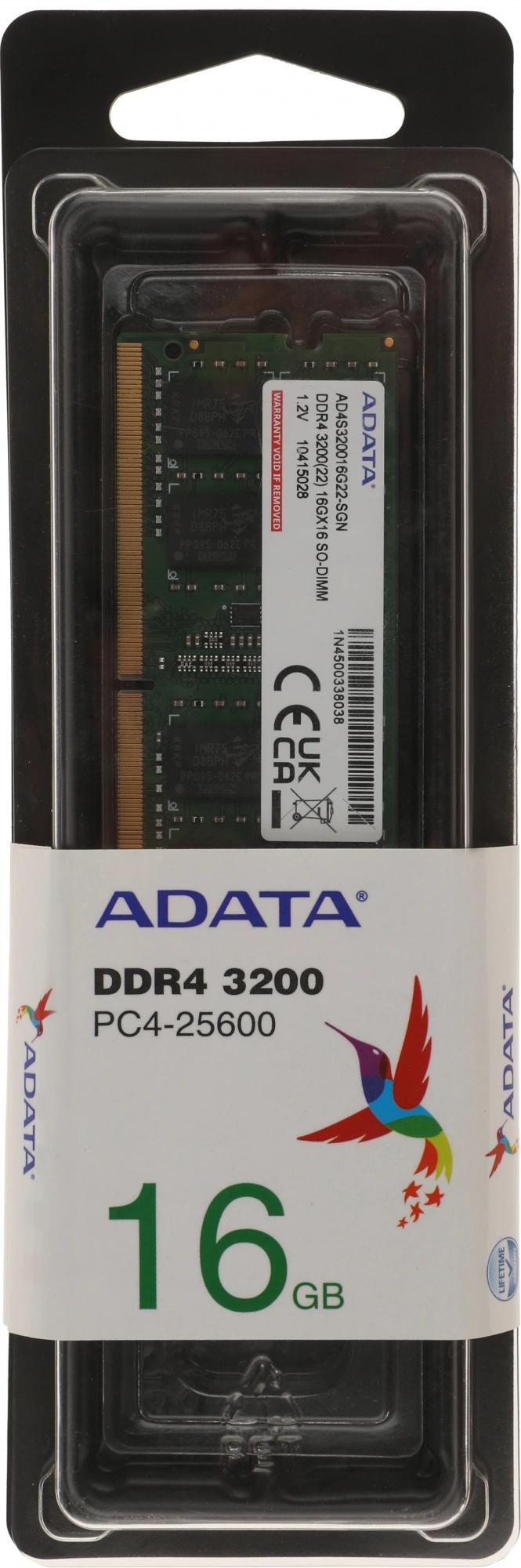 Память DDR4 16GB 3200MHz A-Data AD4S320016G22-SGN RTL PC4-25600 CL22 SO-DIMM 260-pin 1.2В single rank Ret