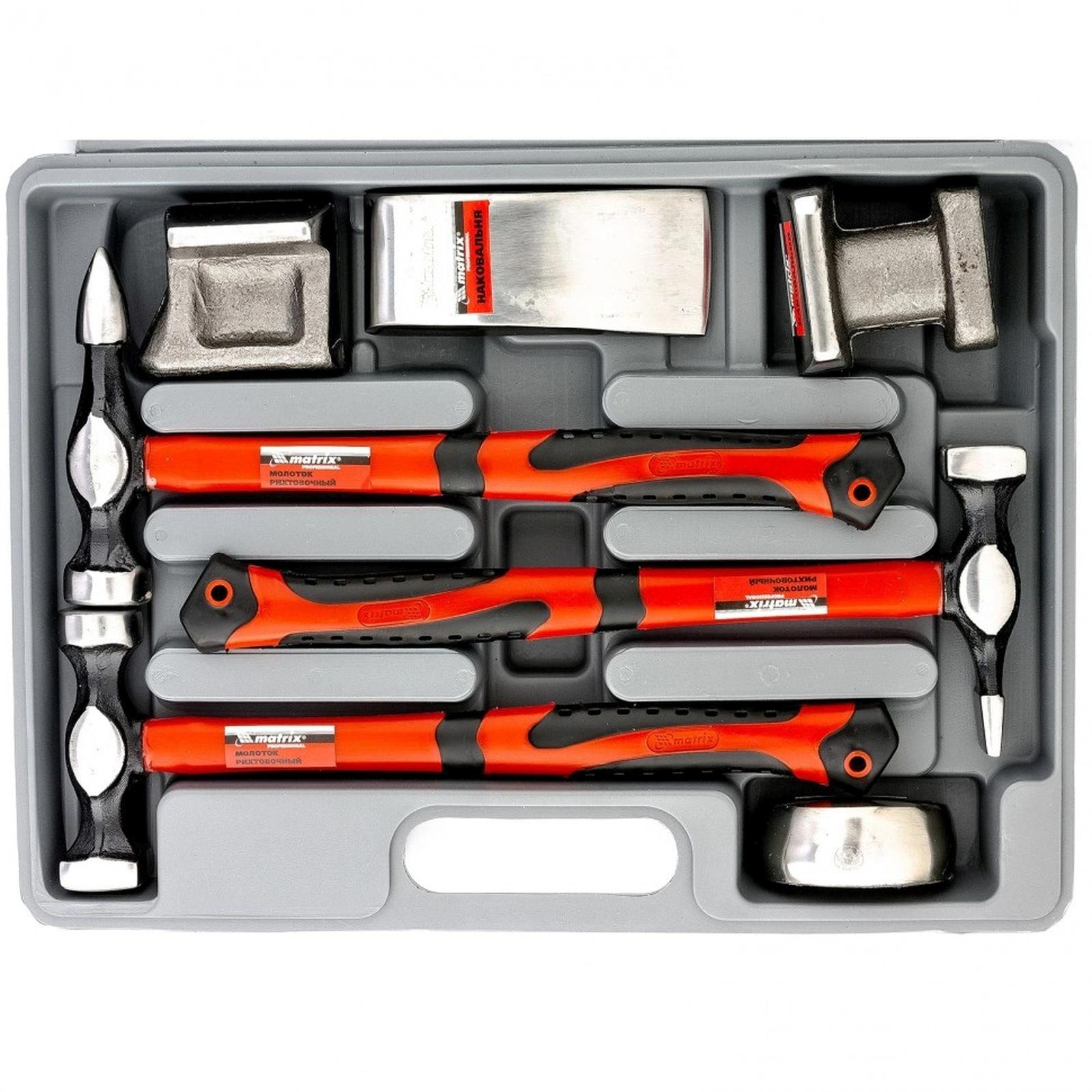 Набор рихтовочный, 3 молотка с фибергласовыми ручками, 4 наковальни, в пласт. боксе.