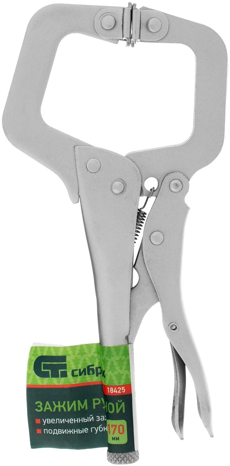Зажим ручной Сибртех 18425 с увеличенным захватом и подвижными губками, 170 мм, позволяет фиксировать и удерживать детали и заготовки в заданном положении. При этом руки мастера остаются свободными. Подвижные губки позволяют работать с предметами сложной формы.