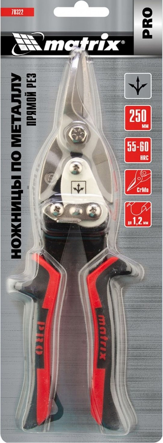 Ножницы по металлу, 250 мм, прямой рез, сталь CRMO, двухкомпонентные рукоятки, PRO / Matrix