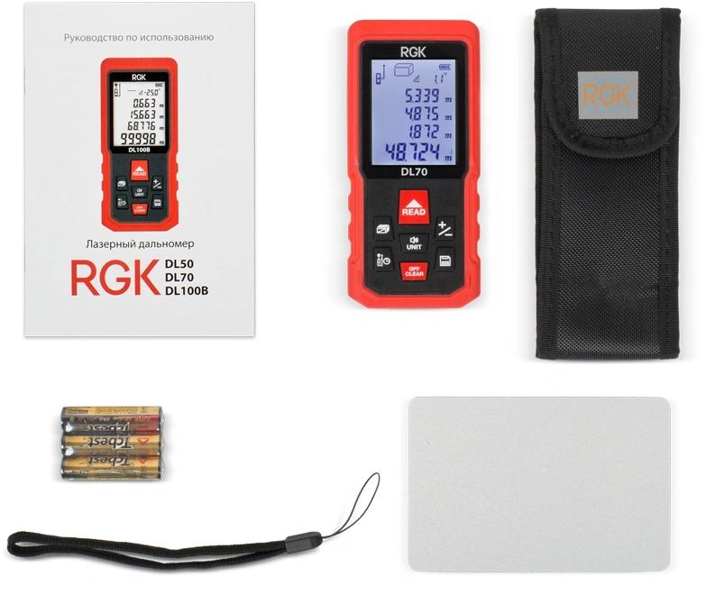 Лазерный дальномер RGK DL70 2кл.лаз. 635нм цв.луч. красный (755702)