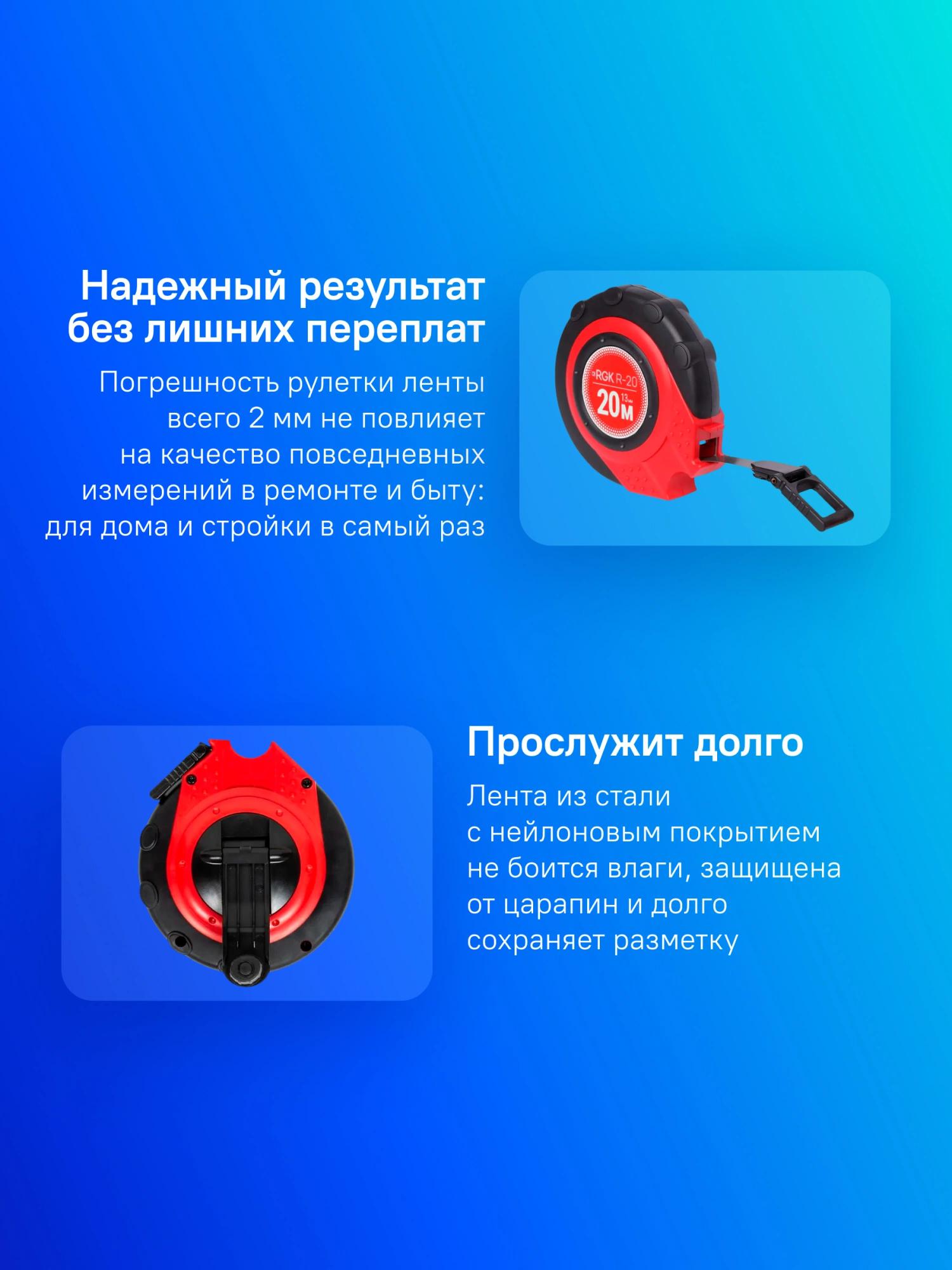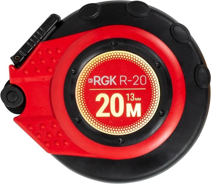 Рулетка строительная RGK R20 дл.полотна 20м изм.шкала в см зацеп простой красный/черный (755894)