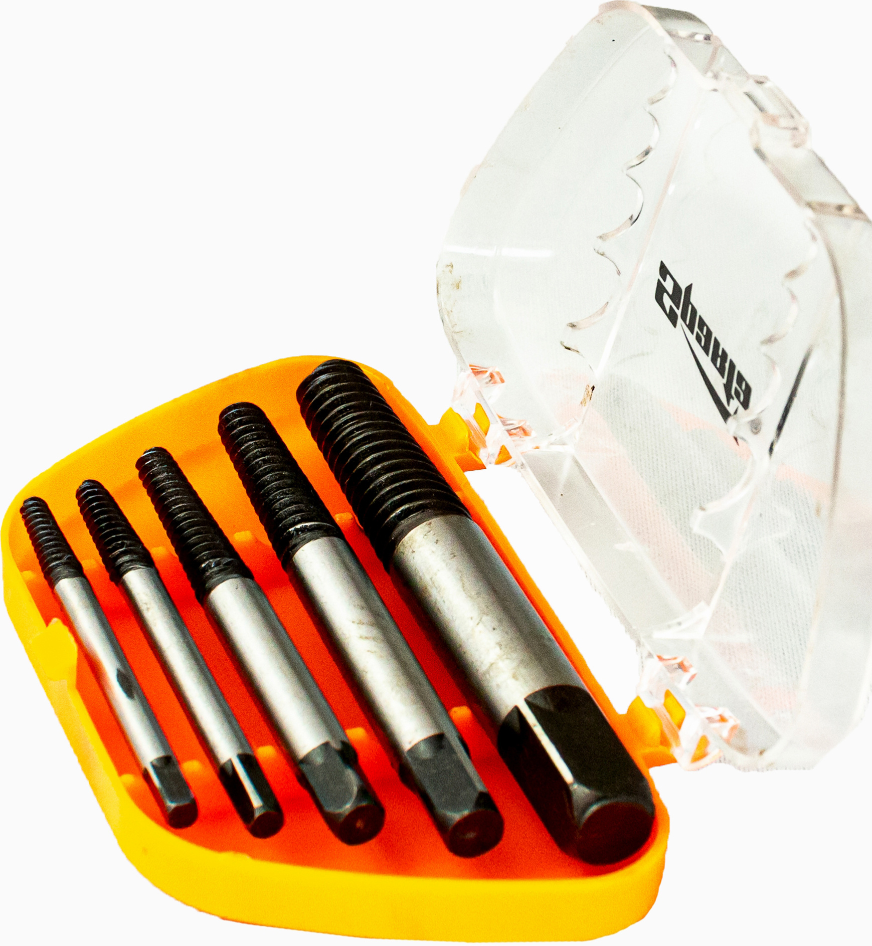 Набор экстракторов, 5 шт.: №1 (3-6 мм.), № 2 (6-8 мм.), № 3 (8-11 мм.), № 4 (11-14 мм.), № 5 (14-18 мм.).