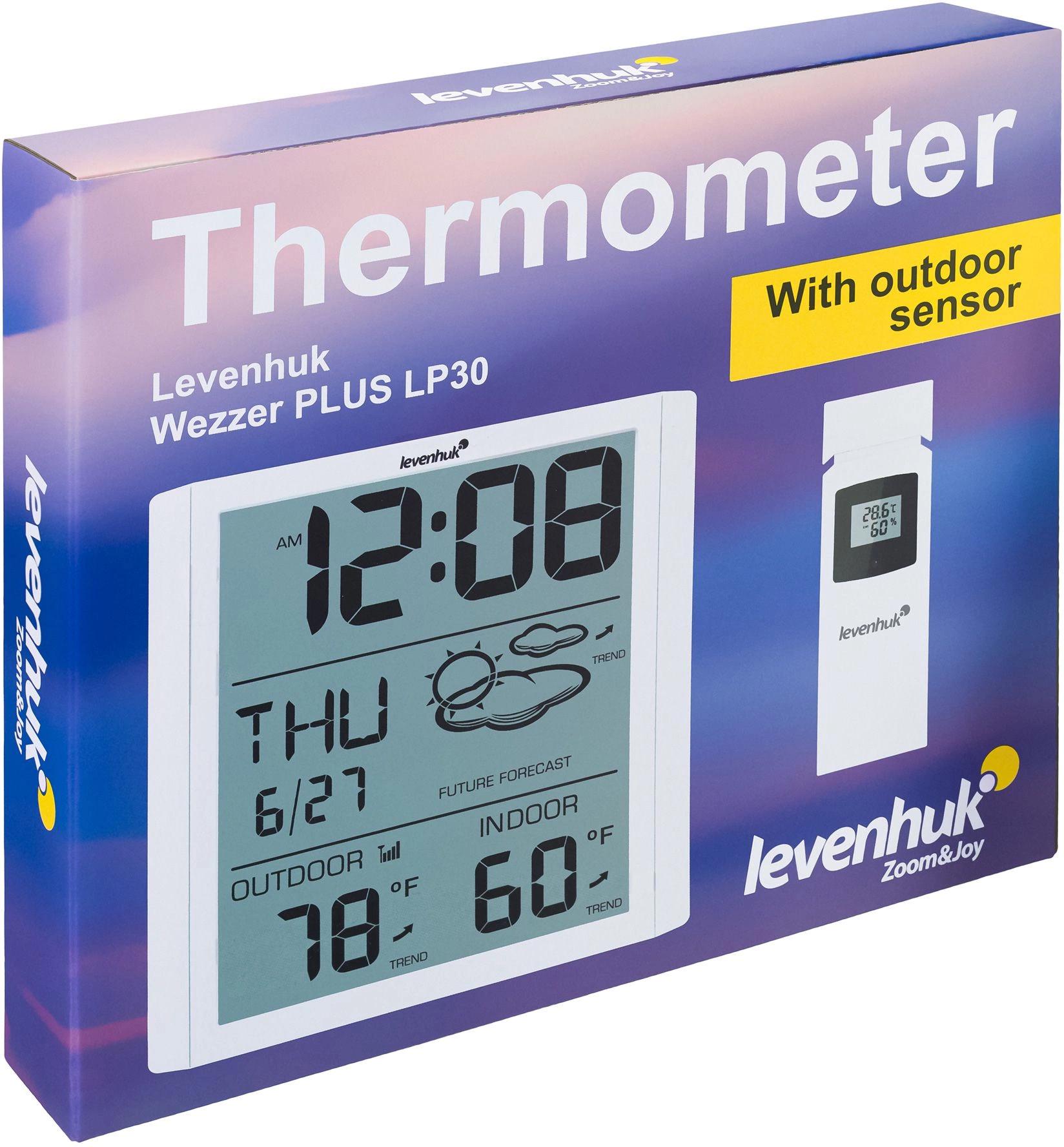 Термометр Levenhuk Wezzer PLUS LP30 – компактное приспособление для контроля погоды на улице и микроклимата в доме. Прибор позволяет узнать точные значения температуры воздуха внутри и снаружи, а также уличную влажность.