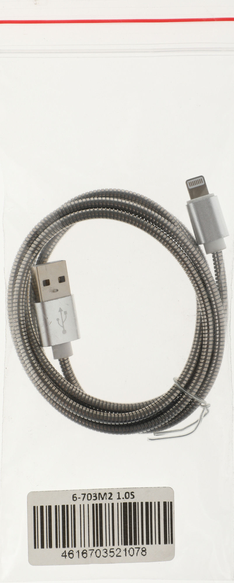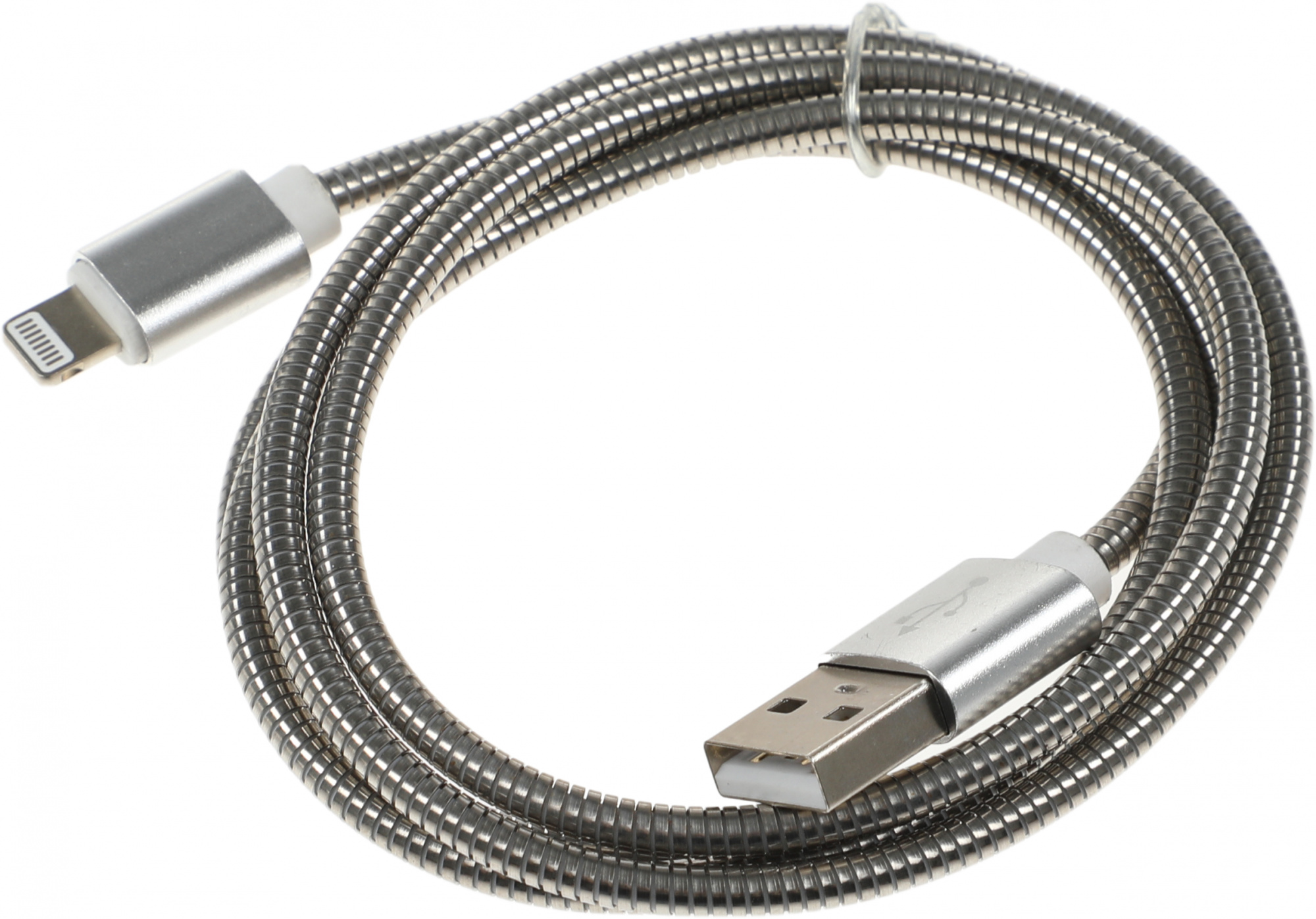 Кабель USB (AM) - Lightning (M) 1.0 m (Silver) metal, предназначен для зарядки и передачи данных, между устройствами имеющими соответствующие разъемы.