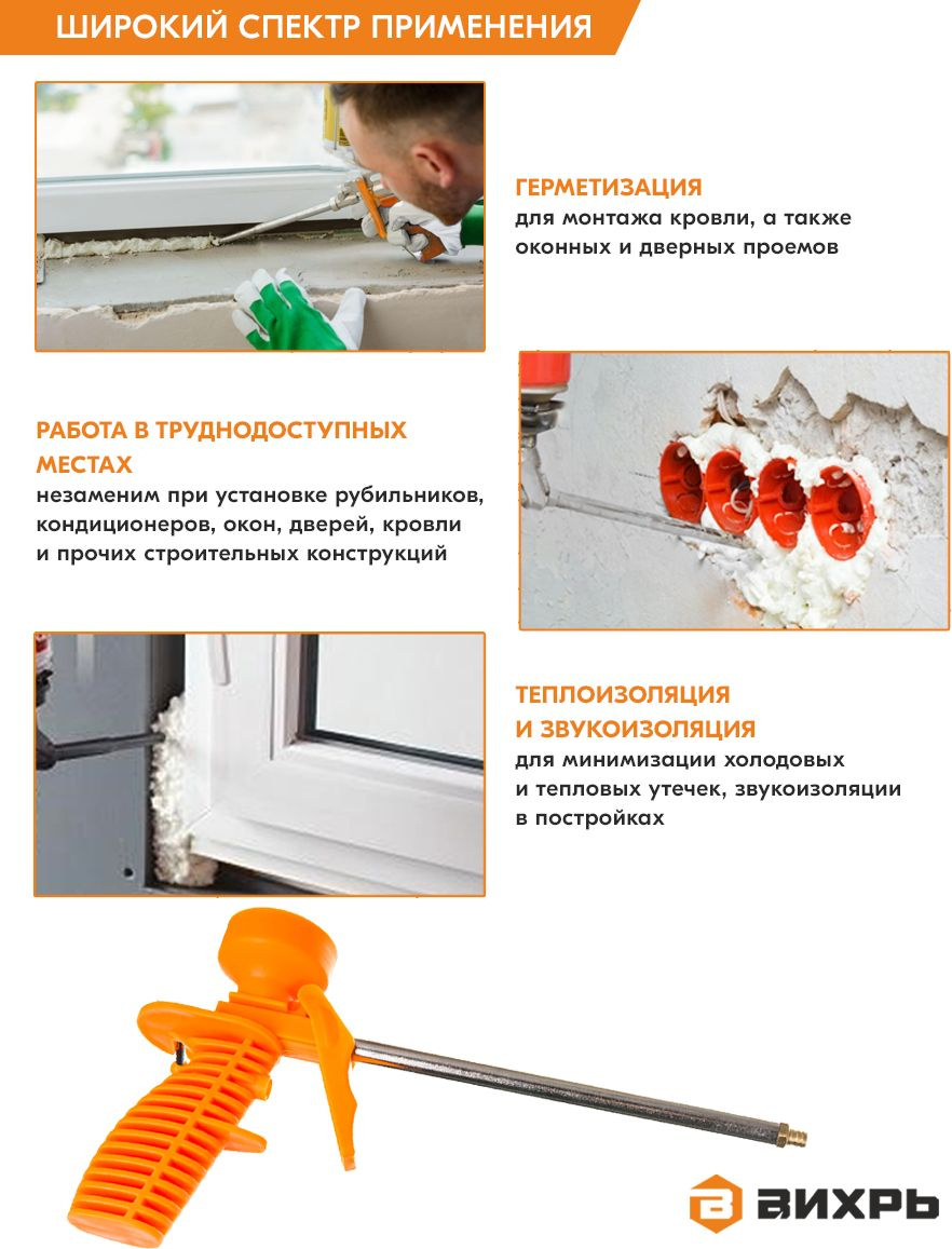 Пистолет для монтажной пены"ЛАЙТ" с пластмассовым корпусом - легкая и простая модель для выдавливания монтажной пены из баллона. Пистолет незаменим при установке окон, дверей, кровли и прочих строительных конструкций, для работы в труднодоступных местах.