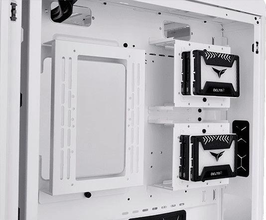 Передняя панель: 1 x 360 мм, 1 x 240 мм, 1 x 120 мм. 1 x 420 мм (только AIO), 1 x 280 мм, 1 x 140 мм. Задняя панель: 1 x 360 мм, 1 x 240 мм, 1 x 120 мм. 1 x 420 мм (только AIO), 1 x 280 мм, 1 x 140 мм. Нижняя панель:1 x 360 мм, 1 x 240 мм, 1 x 120 мм., 1 x 280 мм, 1 x 140 мм