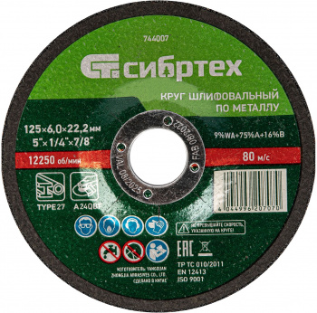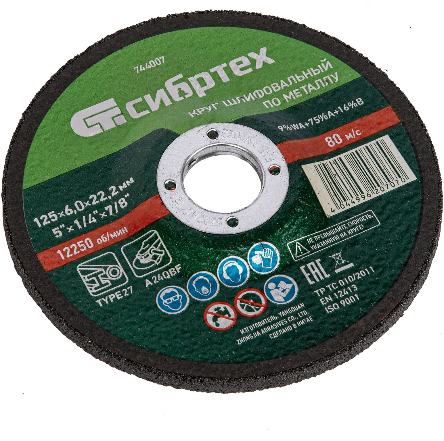 Круг шлиф. по мет. Сибртех 744007 d=125мм d(посад.)=22.2мм (угловые шлифмашины)