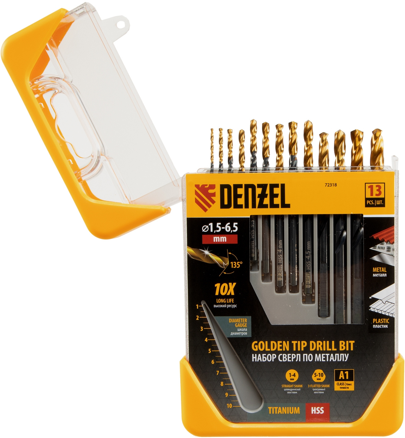 Набор сверл Denzel 72318 по металлу (13пред.) для дрелей