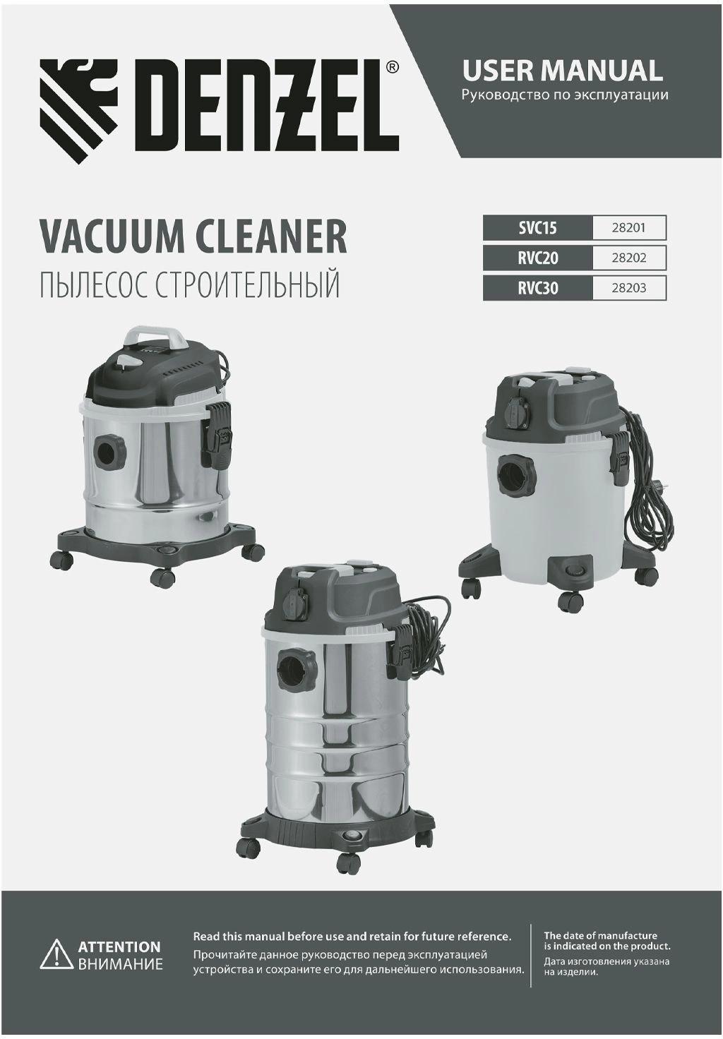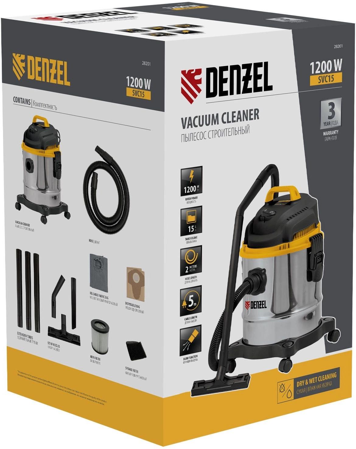 Строительный пылесос Denzel SVC15 1200Вт (уборка: сухая/сбор воды/выдув) серебристый