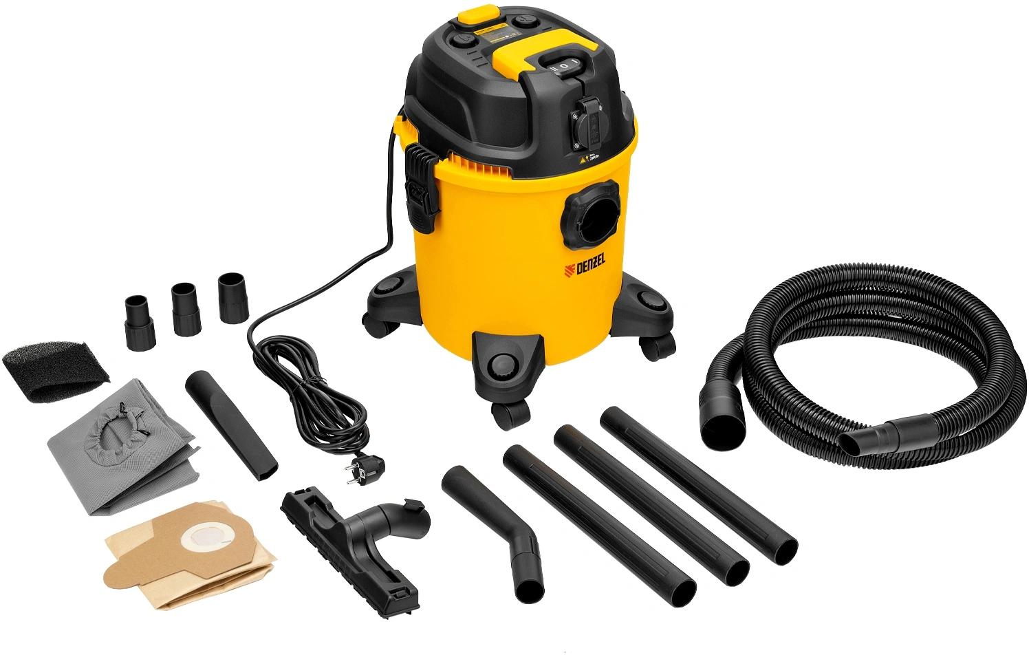 Строительный пылесос Denzel RVC20 1400Вт (уборка: сухая/сбор воды/выдув) желтый