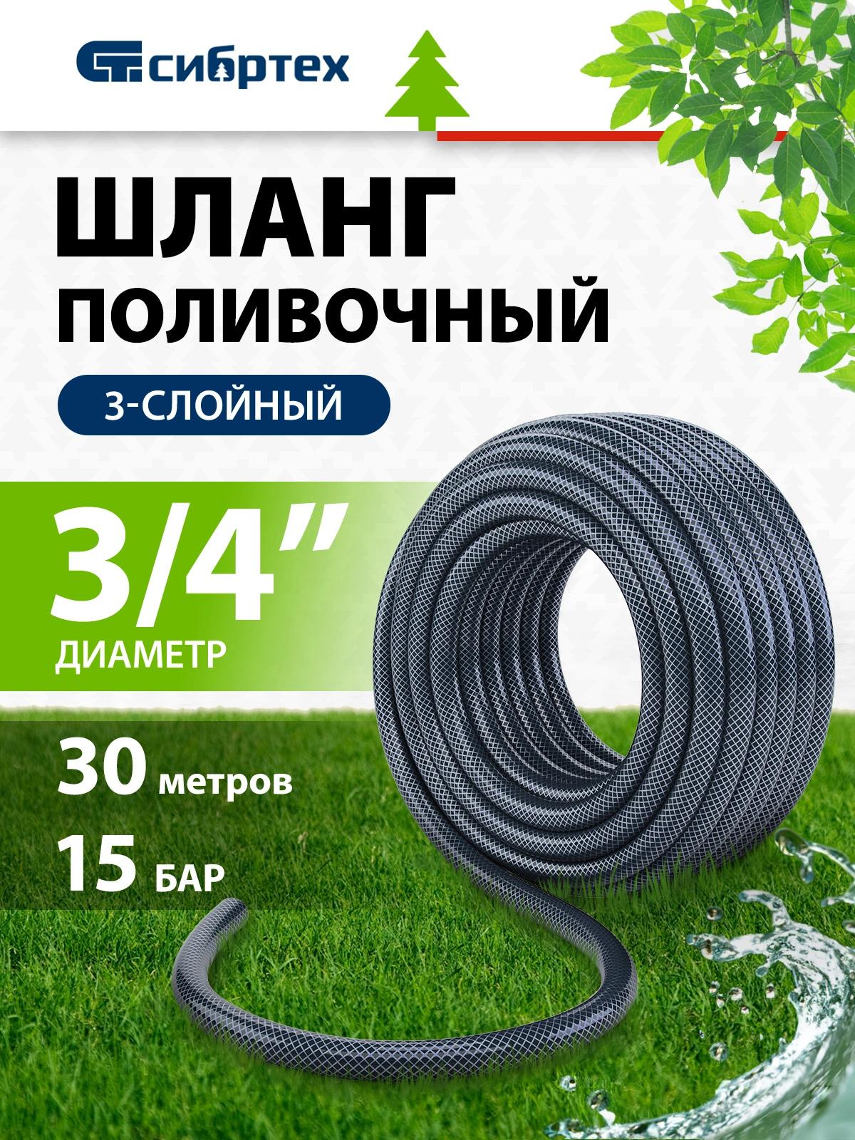 Шланг Сибртех 674402 3/4" 30м поливочный армированный синий