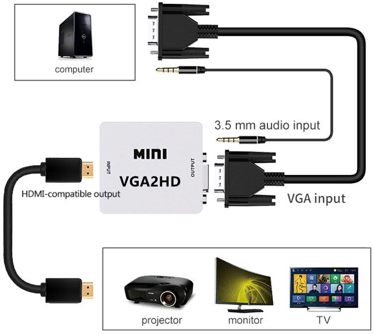 Видеоконвертер вход VGA + Audio L/R"гн" -> выход HDMI"гн" белый"mini"