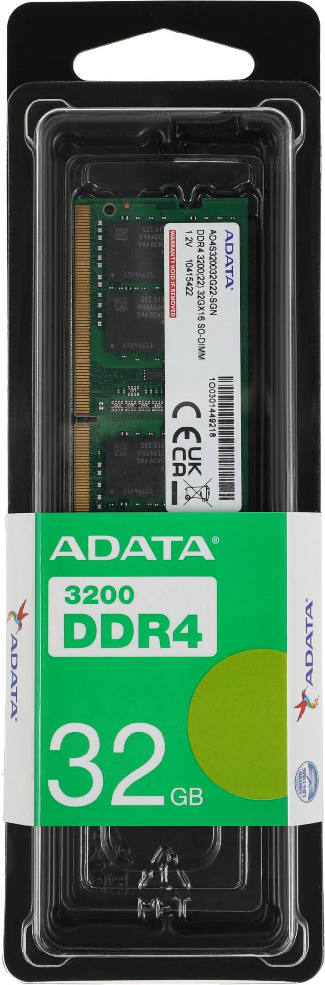 Память DDR4 32GB 3200MHz A-Data AD4S320032G22-SGN RTL PC4-25600 CL22 SO-DIMM 260-pin 1.2В single rank Ret