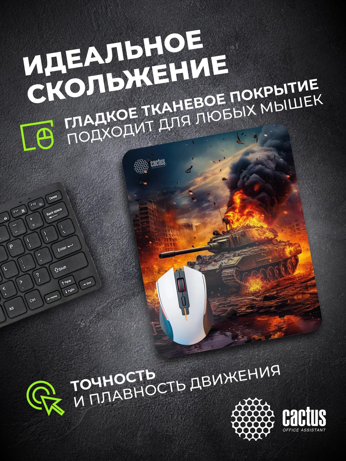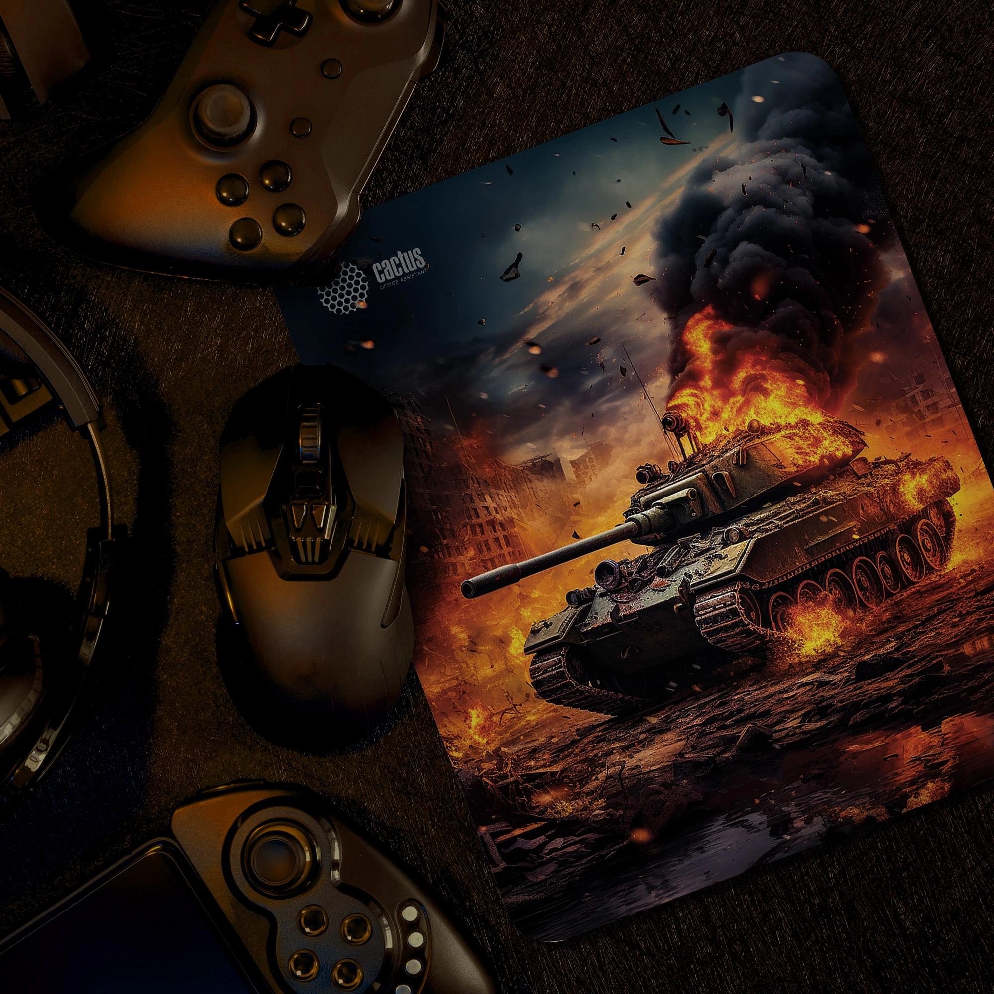 Коврик для мыши Cactus Burning tank рисунок 300x250x3мм (CS-MP-D04M)
