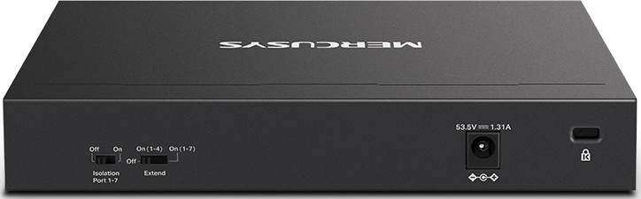 Гигабитные порты: восемь портов RJ45 10/100/1000 Мбит/с.Семь портов PoE+: позволят подавать питание и передавать данные по одному кабелю.Бюджет PoE: бюджет на один порт составляет 30 Вт, а общий бюджет — 65 Вт.Режим увеличения дальности: позволит увеличить дальность передачи до 250 метров.