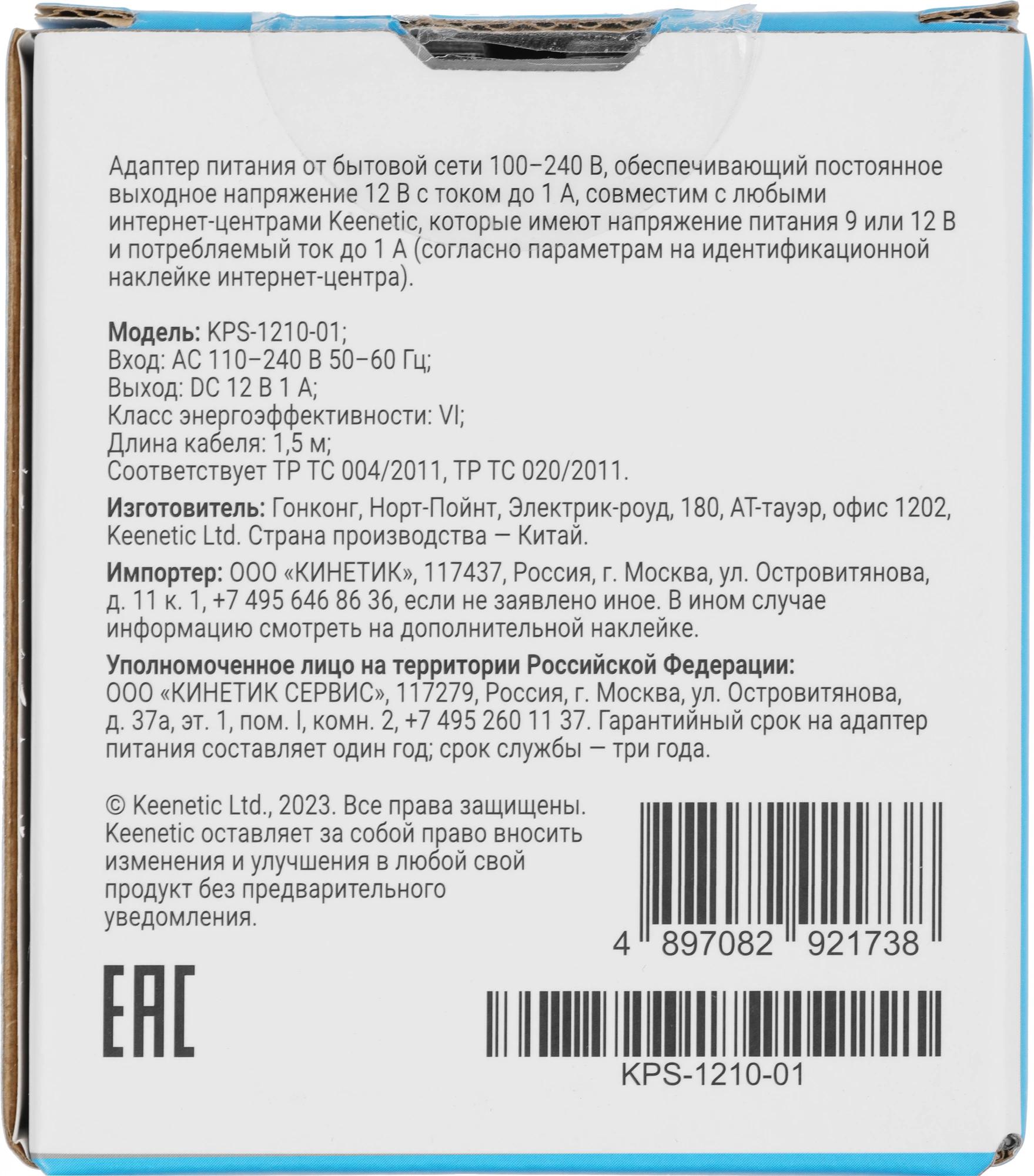 Блок питания Keenetic KPS-1210-01 (KPS-1210) 9-12В до 1А
