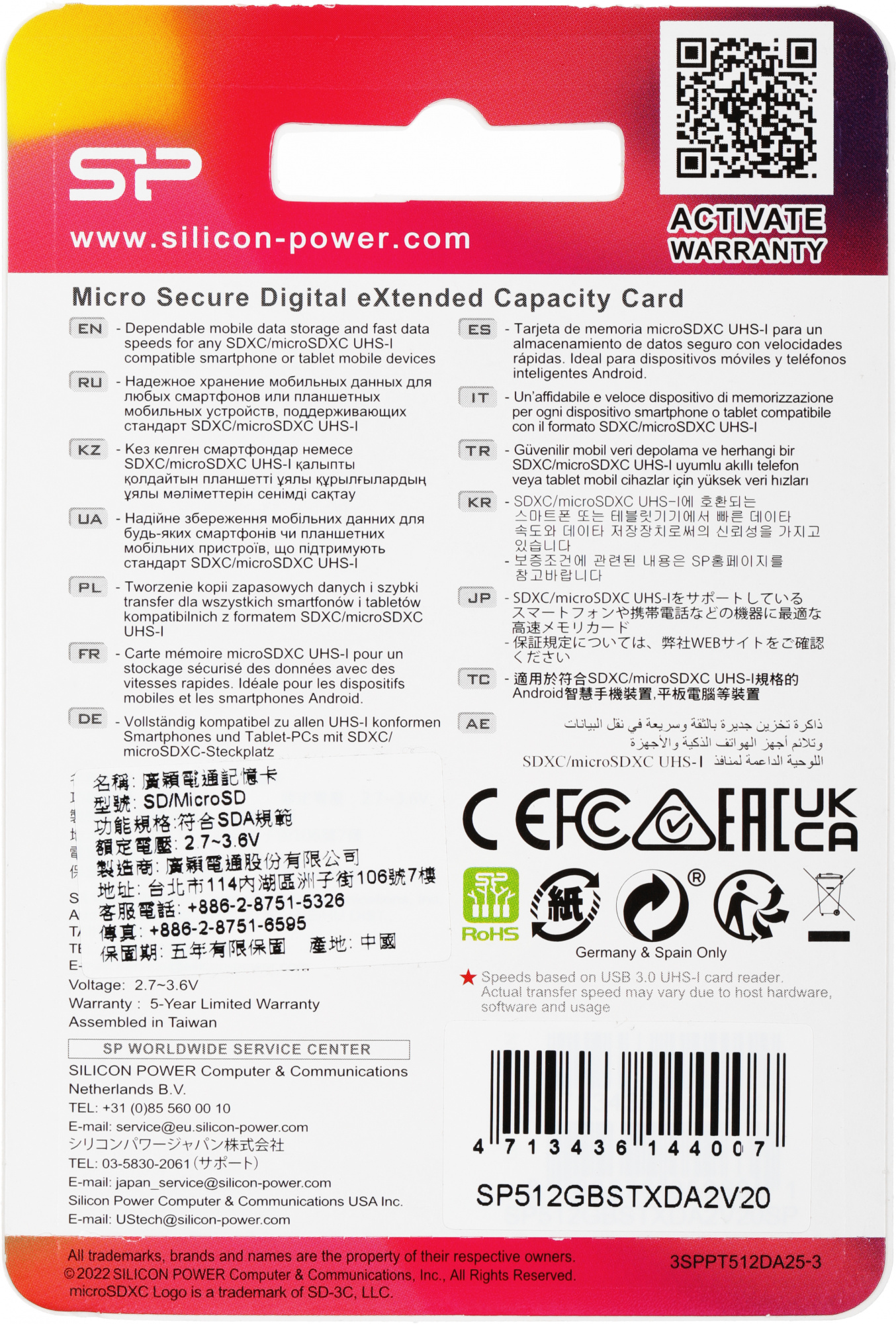 Флеш карта microSDXC 512GB Silicon Power SP512GBSTXDA2V20 Superior V30 A2 w/o adapter