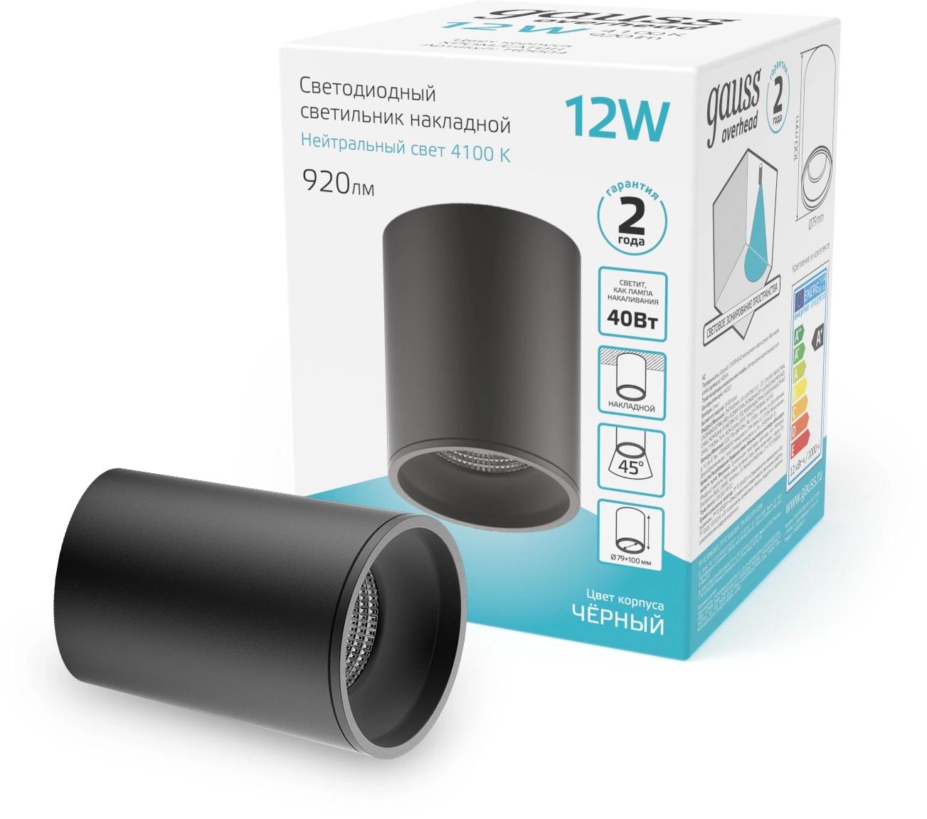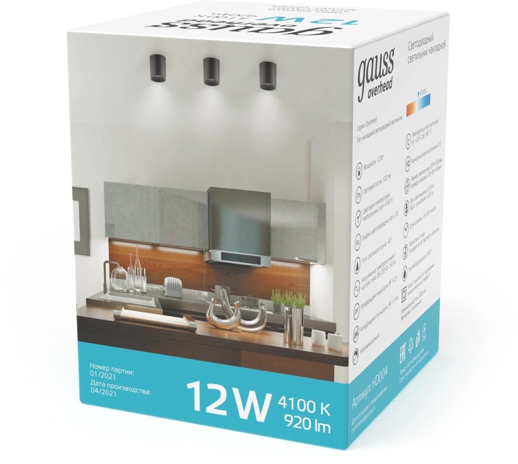 Светильник Gauss Overhead потолоч. 12Вт 4100K цв.св.:белый нейтральный черный (HD007)