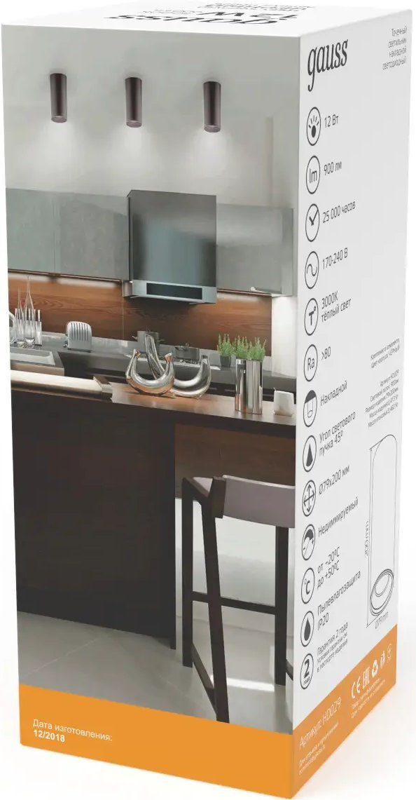 Светильник Gauss Overhead HD029 потолоч. 3000K цв.св.:белый теплый черный