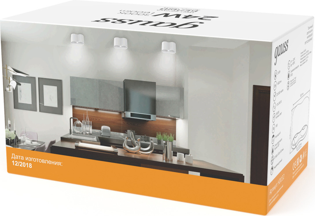 Светильник Gauss Overhead HD032 потолоч. 24Вт 3000K цв.св.:белый теплый белый