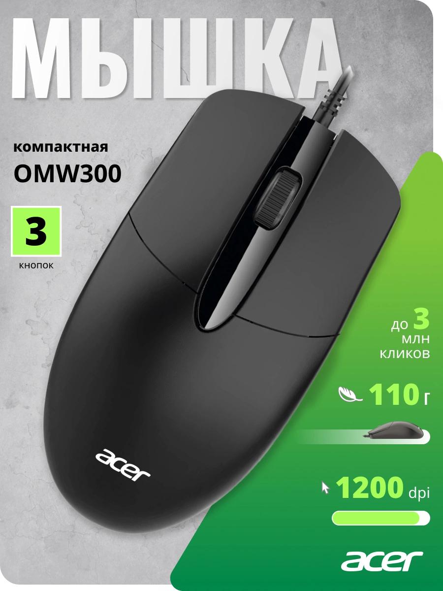 Мышь Acer OMW300 черный оптическая 1200dpi USB 3but (ZL.MCECC.01W)