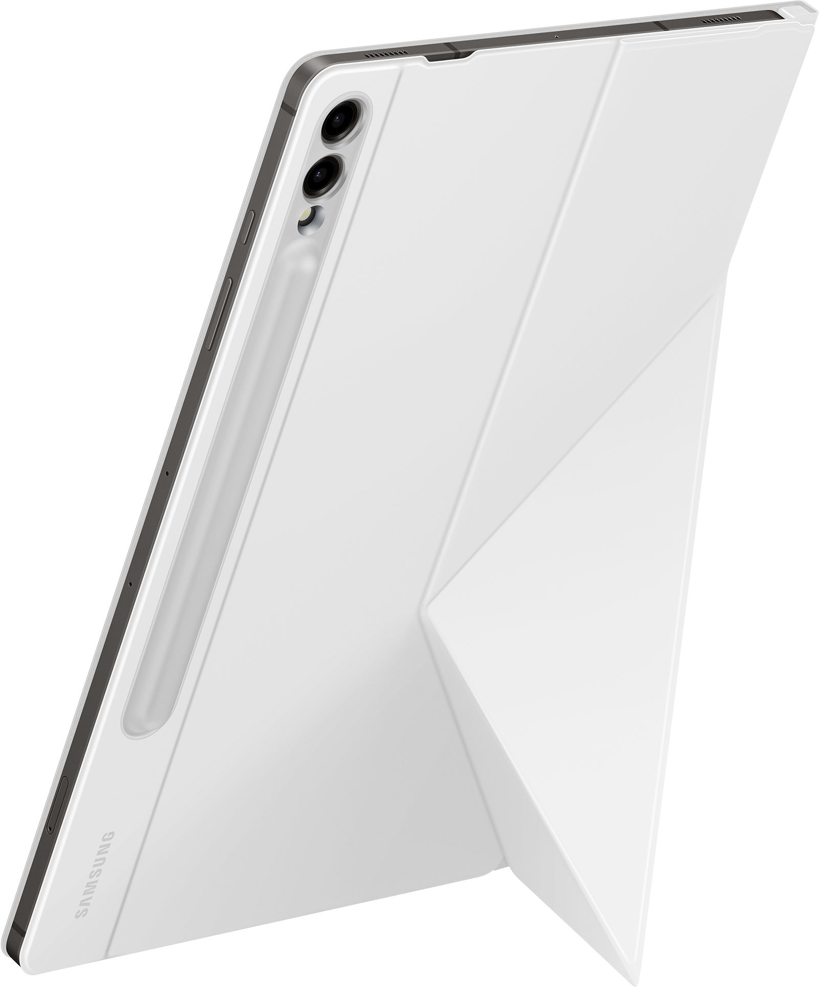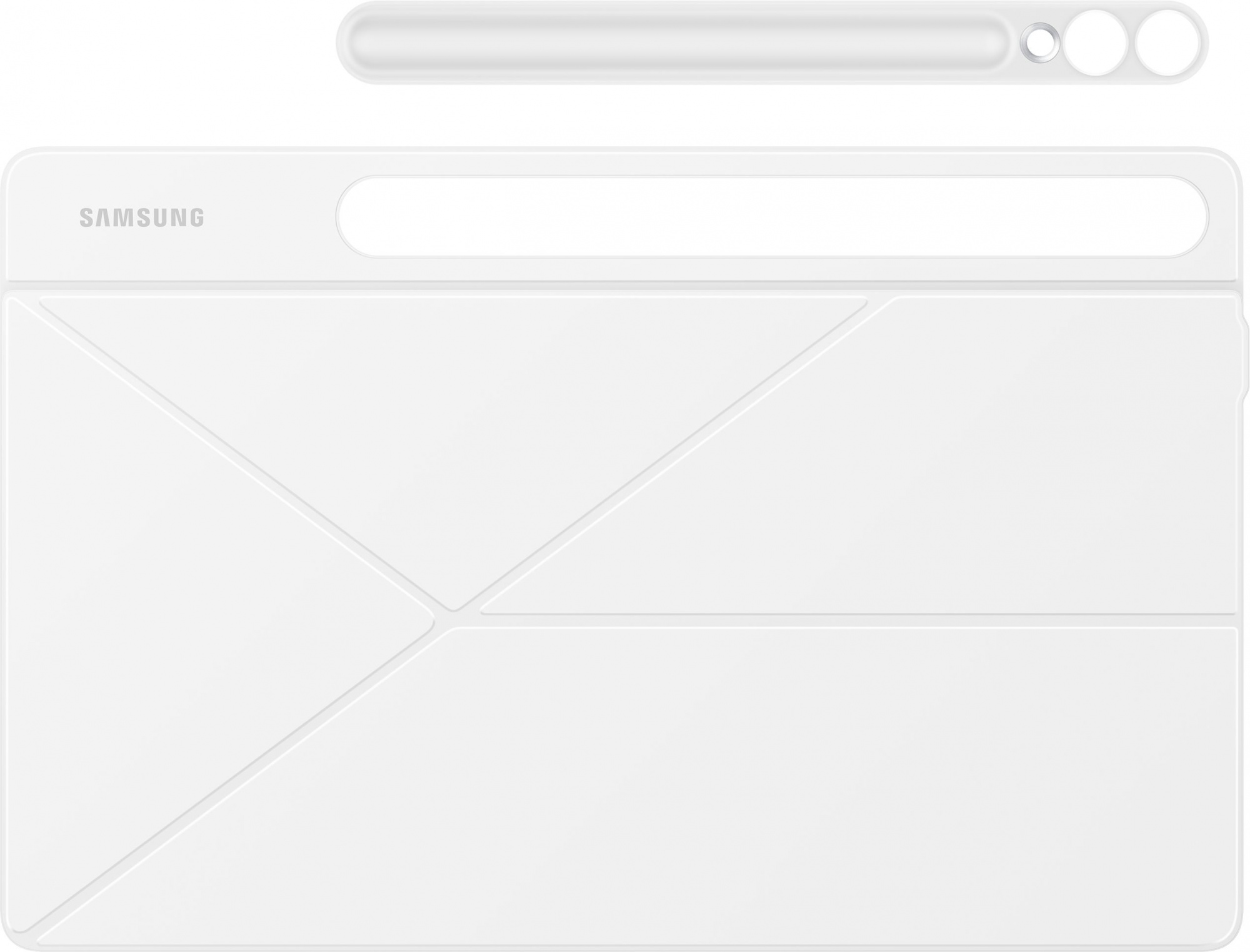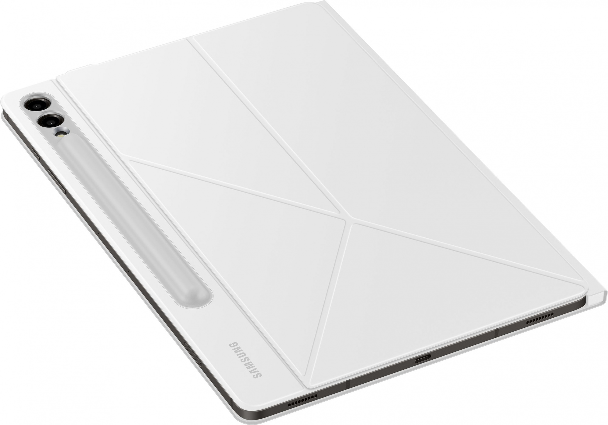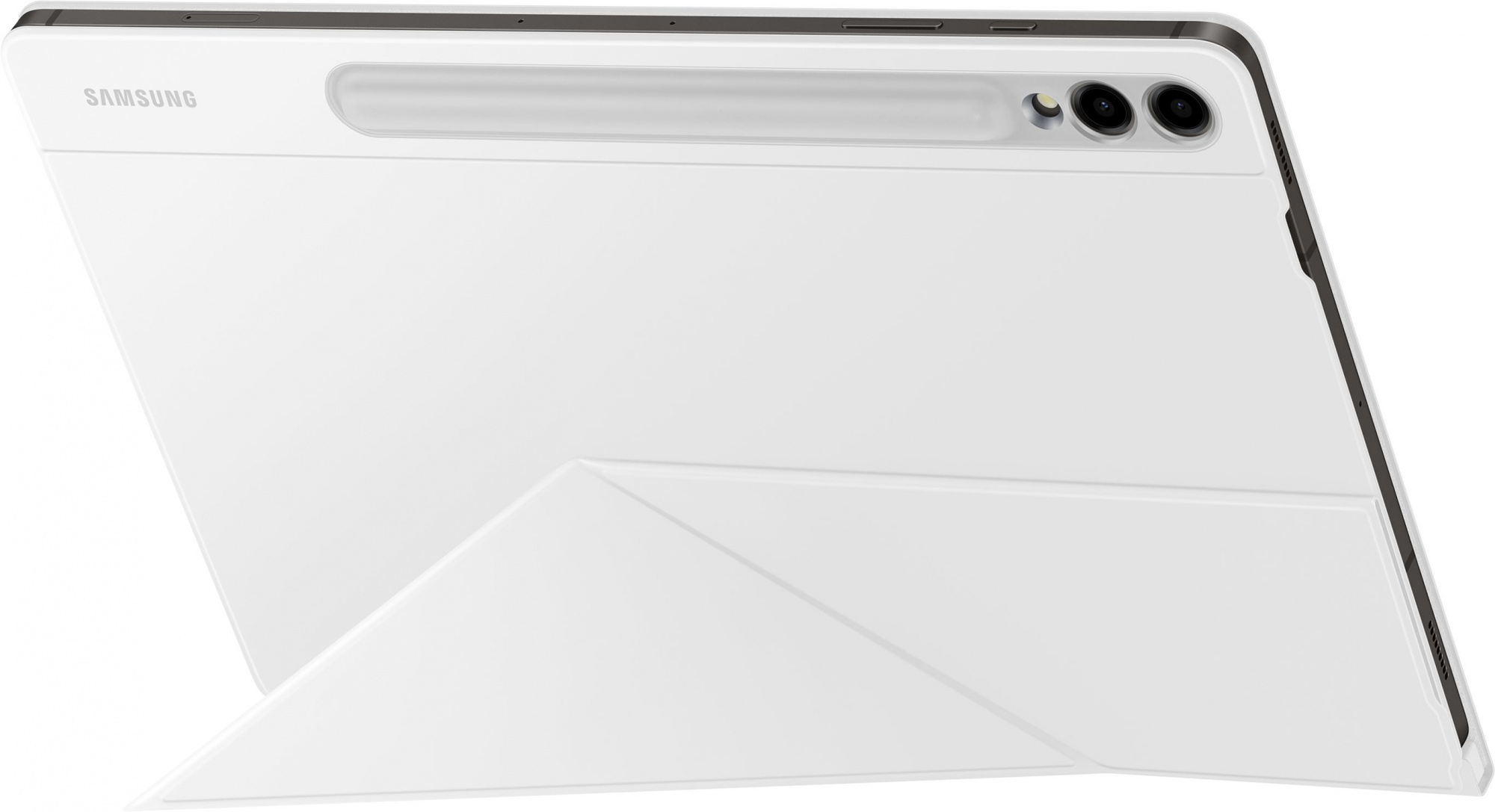 Защита корпуса и экрана, магнитное крепление, 2 варианта подставки, возможность установки вместе с другими чехлами-накладками на внешний экран, автоматическое включение/выключение экрана, встроенный отсек для электронного пера S Pen.