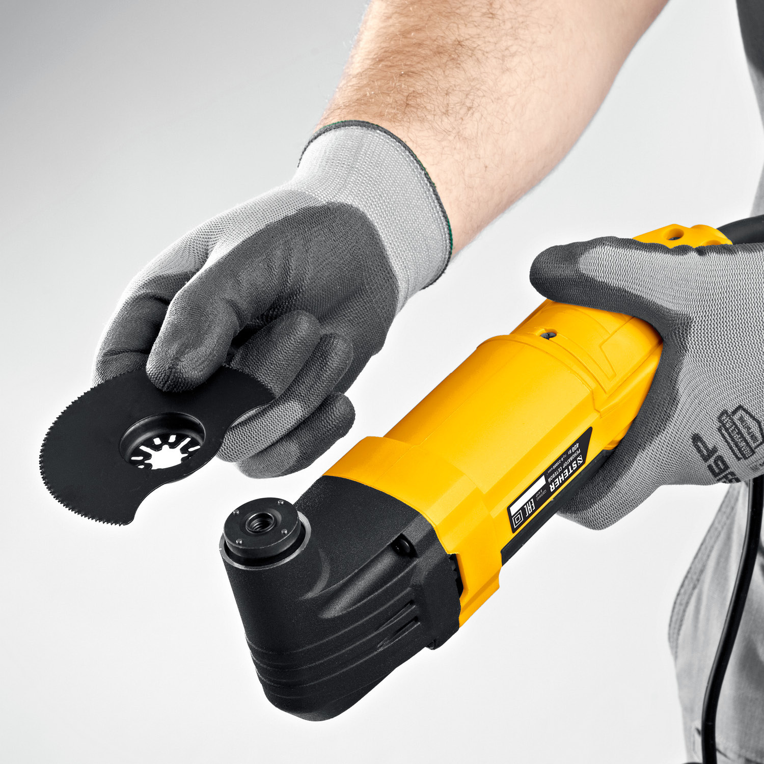 шабер, универсальная прямая пильная насадка, шлифовальная подошва, наждачная бумага - 3 шт., сегментное пильное полотно 88 мм.