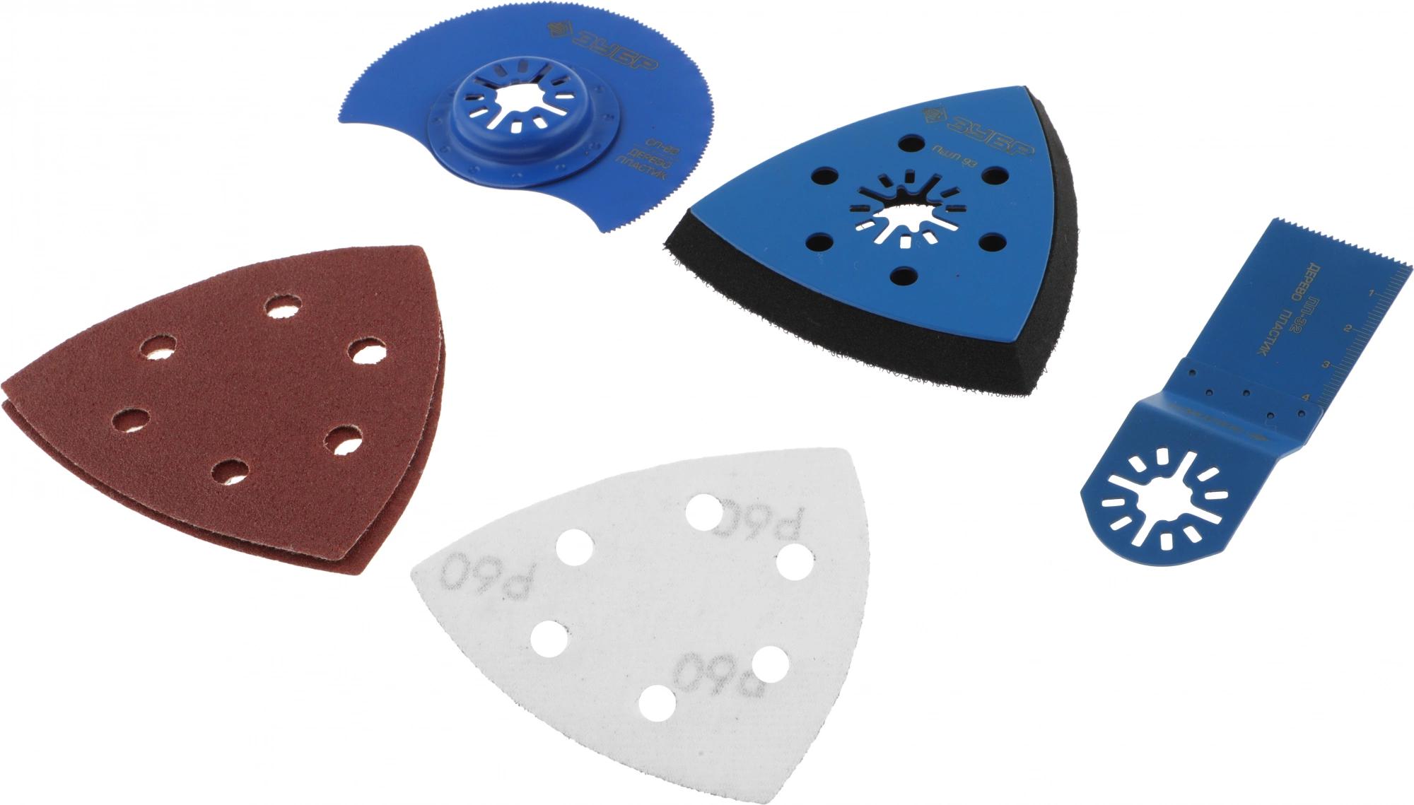 Шабер, универсальная прямая пильная насадка, шлифовальная подошва, наждачная бумага - 3 шт., сегментное пильное полотно 88 мм, рукоятка дополнительная.