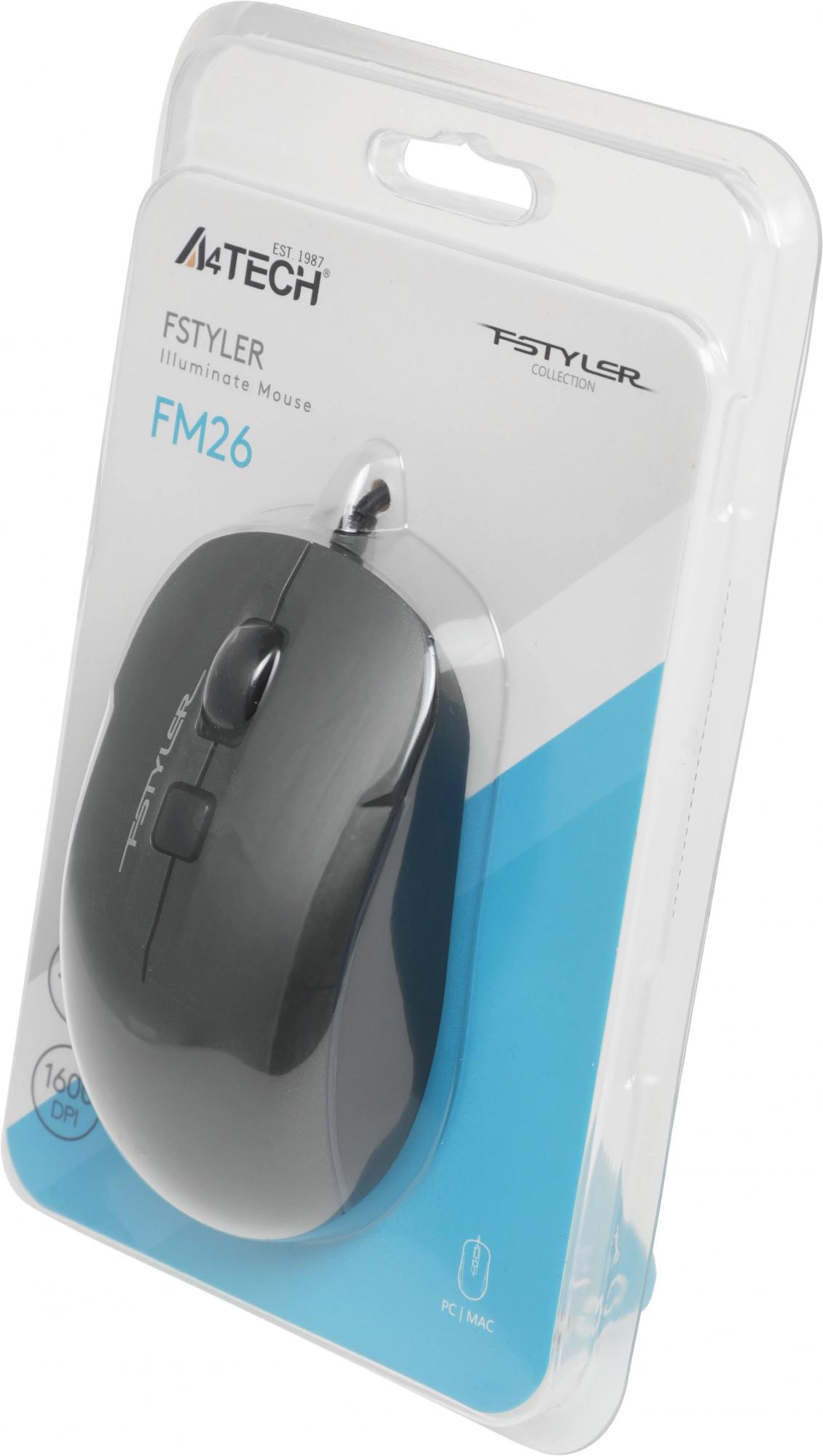Мышь A4Tech Fstyler FM26 серый/черный оптическая 1600dpi USB для ноутбука 4but (FM26 USB (SMOKY GREY))