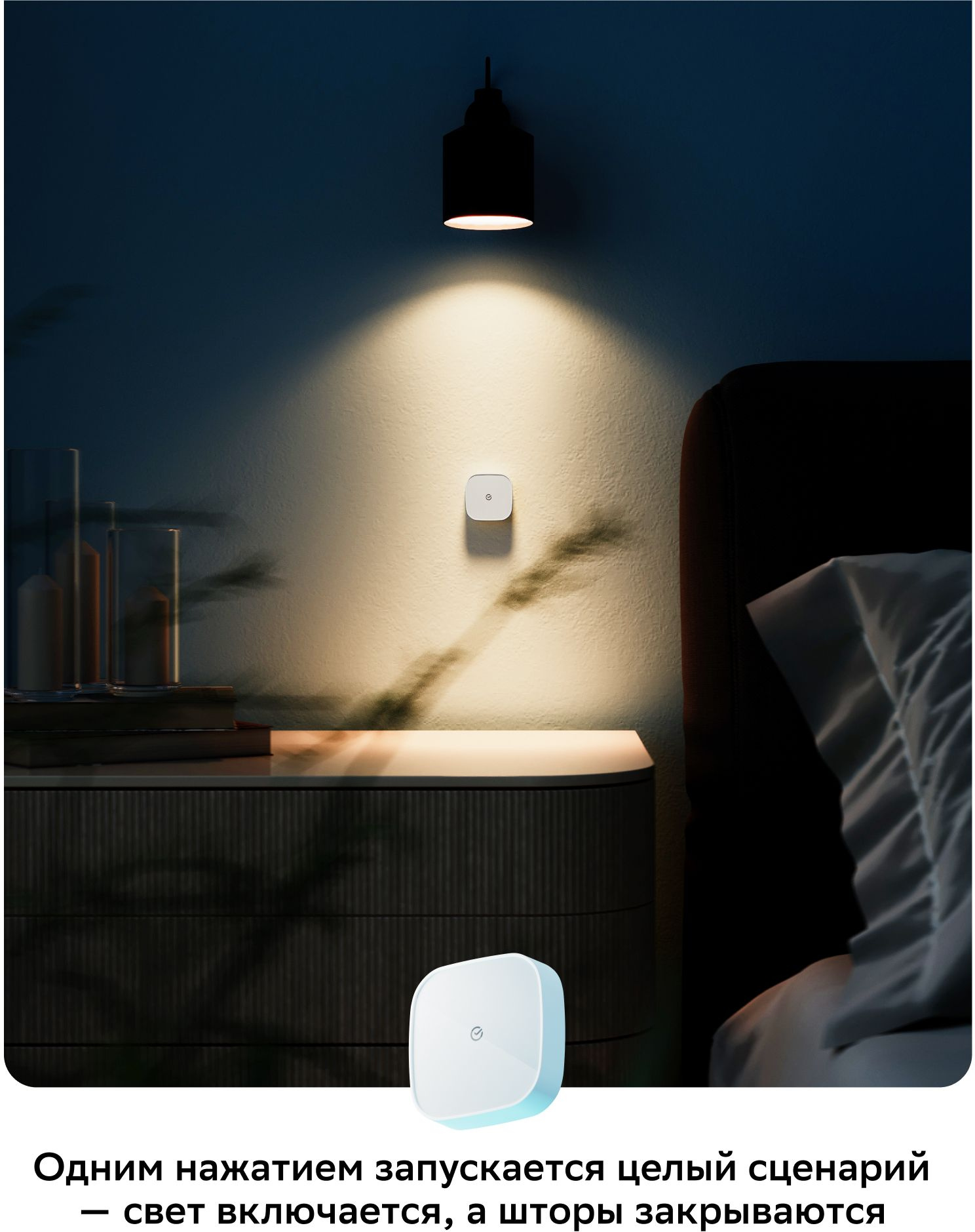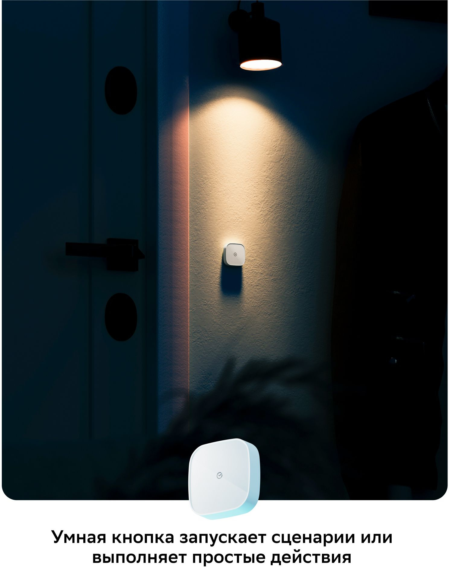 Умная кнопка Sber SBDV-00032 умеет выполнять простые действия или запускать целые сценарии. Для работы необходим центр управления умным домом - Хаб Sber (продается отдельно).