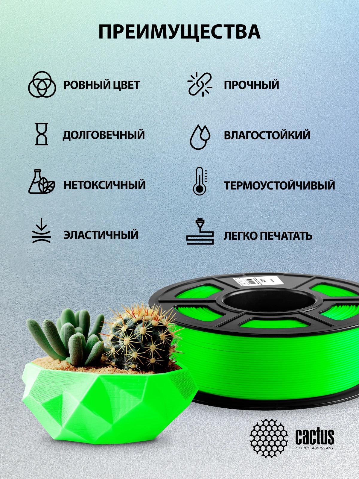 Пластик для принтера 3D Cactus CS-3D-ABS-1KG-GREEN ABS d1.75мм 1кг L386м 1цв.
