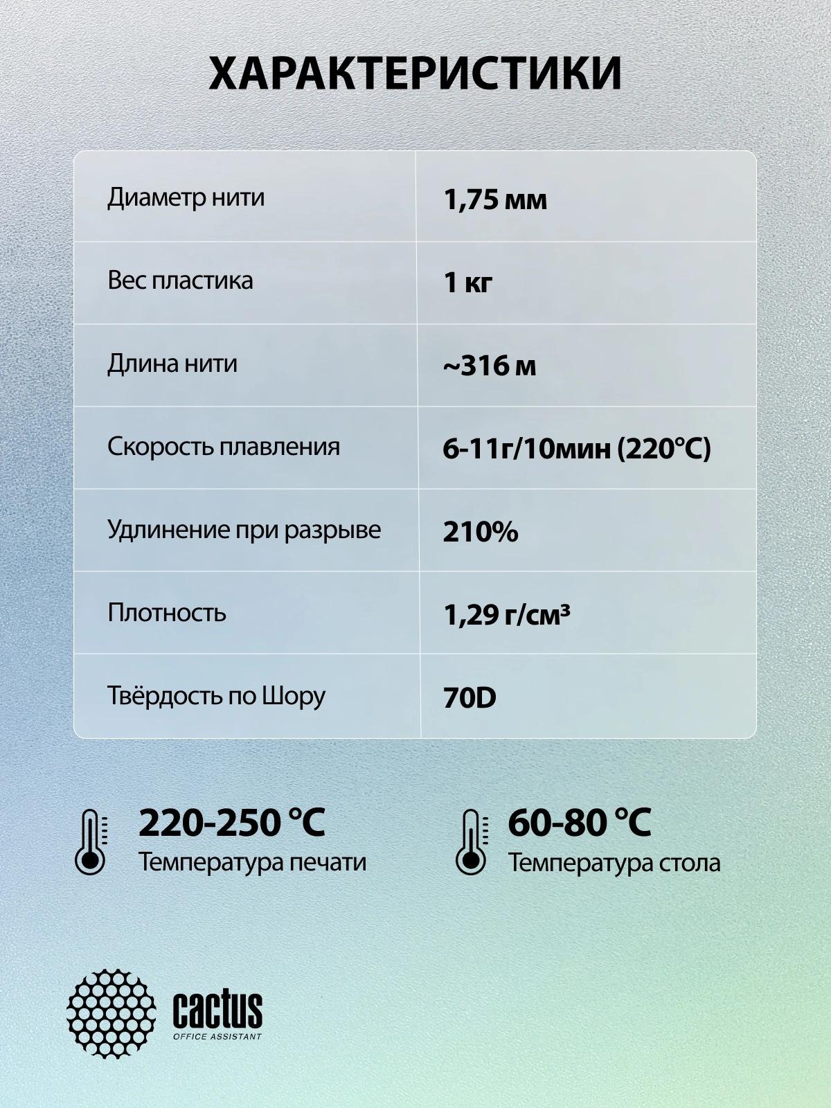Пластик для принтера 3D Cactus CS-3D-PETG-1KG-T-GREEN PETG d1.75мм 1кг L316м 1цв.