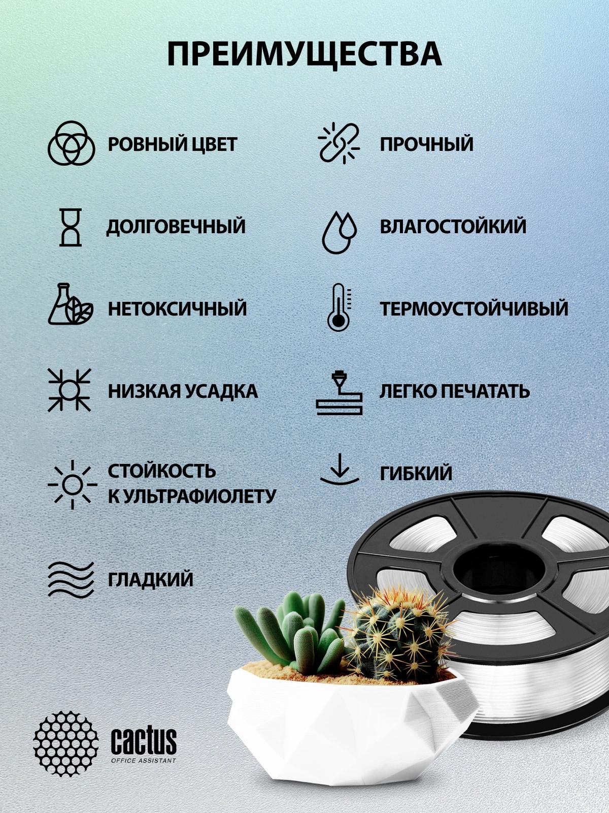Пластик для принтера 3D Cactus CS-3D-PETG-1KG-T-WHT PETG d1.75мм 1кг L316м 1цв.