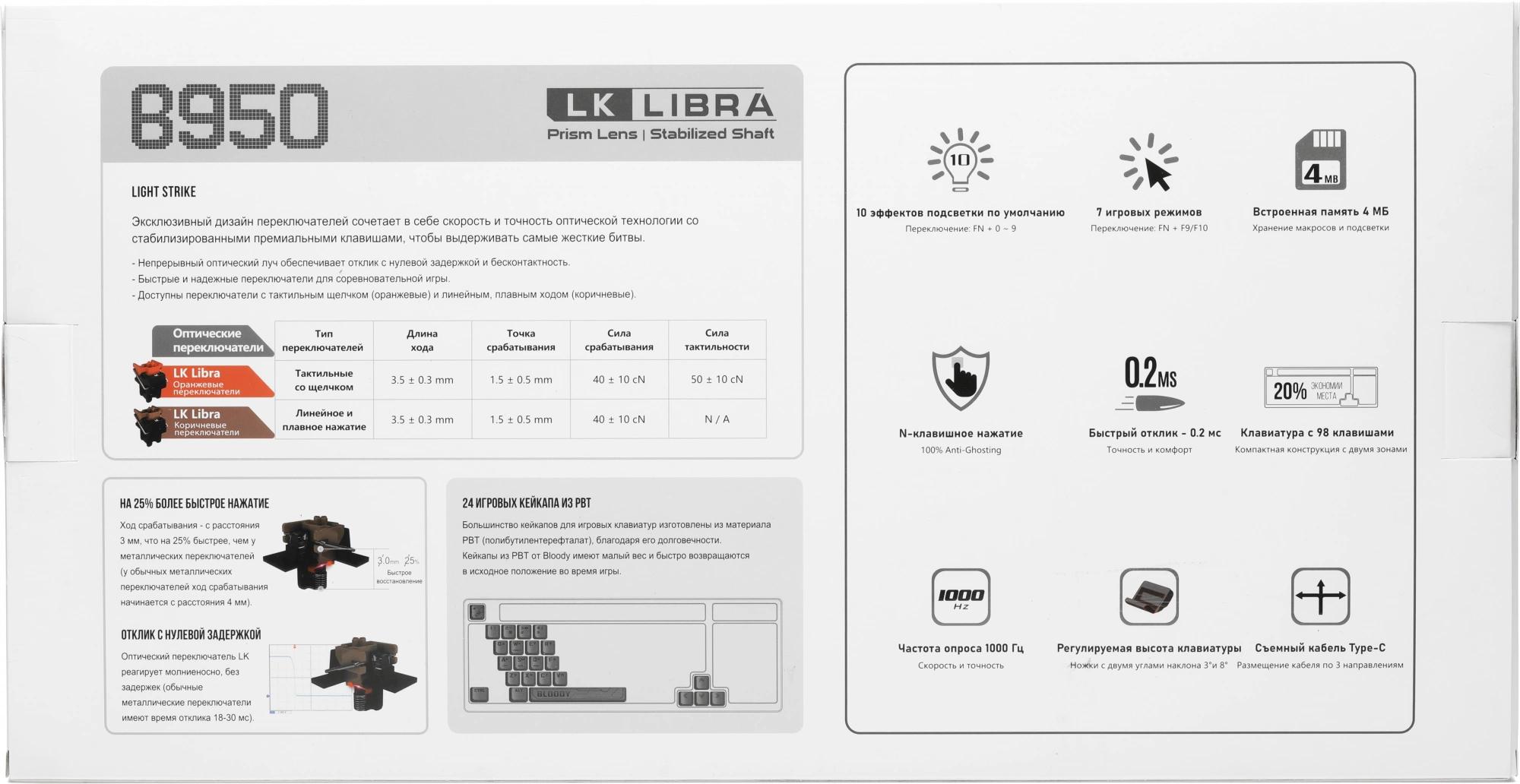 Клавиатура A4Tech Bloody B950 механическая серый/черный USB for gamer LED (B950)