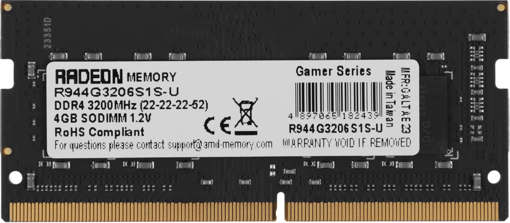 Память DDR4 4GB 3200MHz AMD R944G3206S1S-U R9 RTL PC4-25600 CL22 SO-DIMM 260-pin 1.2В Ret