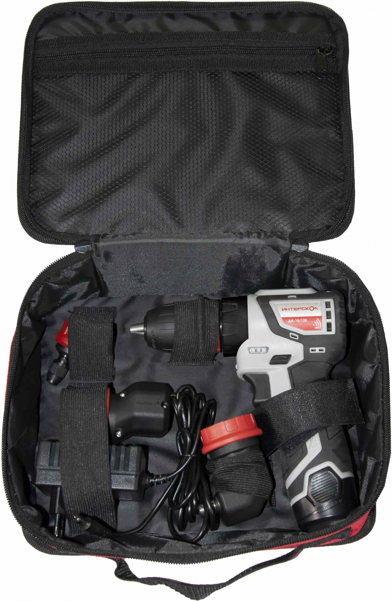 Машина ручная сверлильная аккумуляторная, патрон кулачковый, инструкция по безопасности и руководство по эксплуатации, гарантийный талон, батарея аккумуляторная, 2, 0 Ач - 2 шт., зарядное устройство, сумка тканевая.
