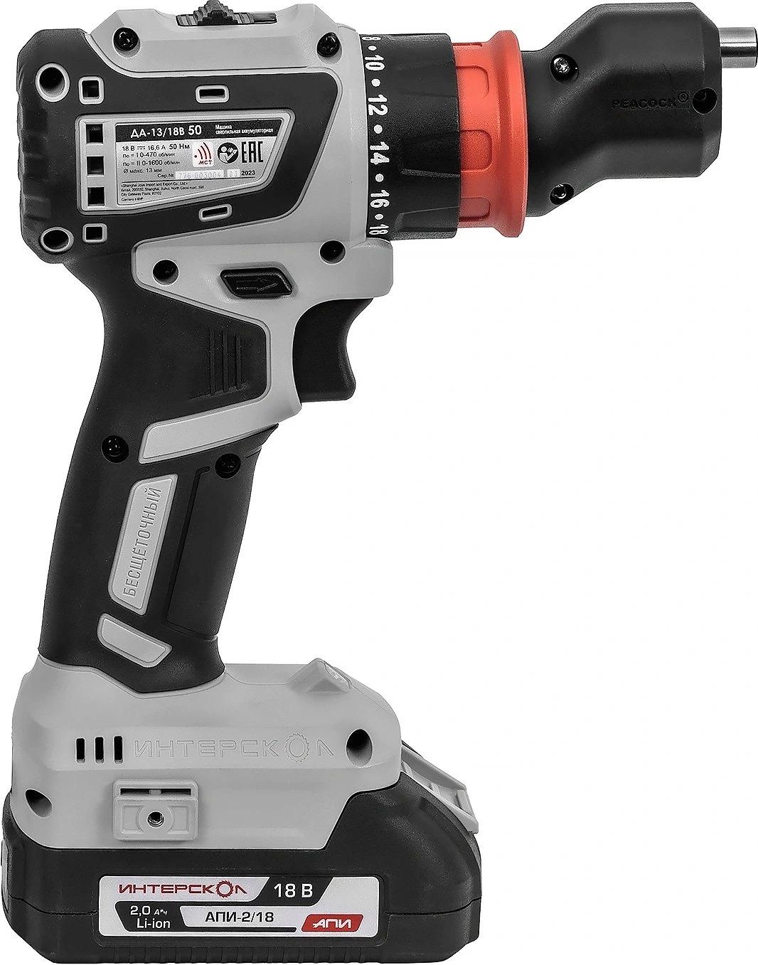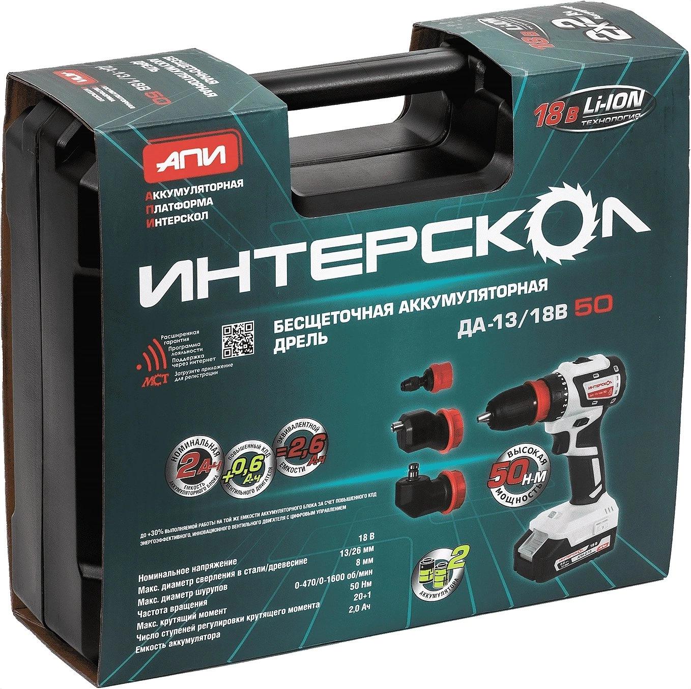 Машина ручная сверлильная, патрон сверлильный БЗП, редуктор эксцентриковый насадка, редуктор угловой насадка, патрон для специальных сверл насадка, инструкция по безопасности и руководство по эксплуатации, батарея аккумуляторная, 2, 0 Ач 2 шт., зарядное устройство, кейс пластмассовый.