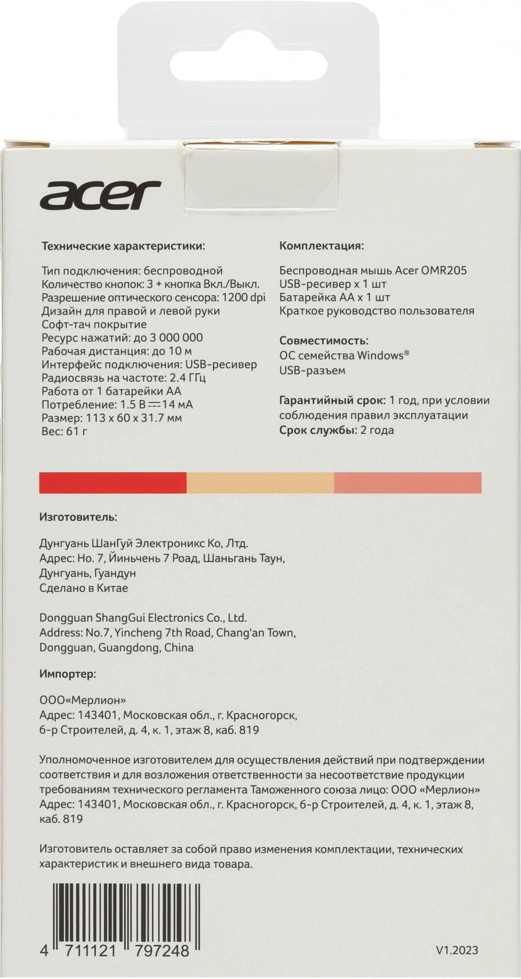 Мышь Acer OMR205 розовый/бежевый оптическая 1200dpi беспров. USB для ноутбука 3but (ZL.MCEEE.02L)