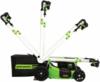 Аккумуляторная газонокосилка, травосборник, боковой разгрузочный отражатель, ключ зажигания, заглушка для мульчирования, руководство по эксплуатации, гарантийный талон, упаковка.