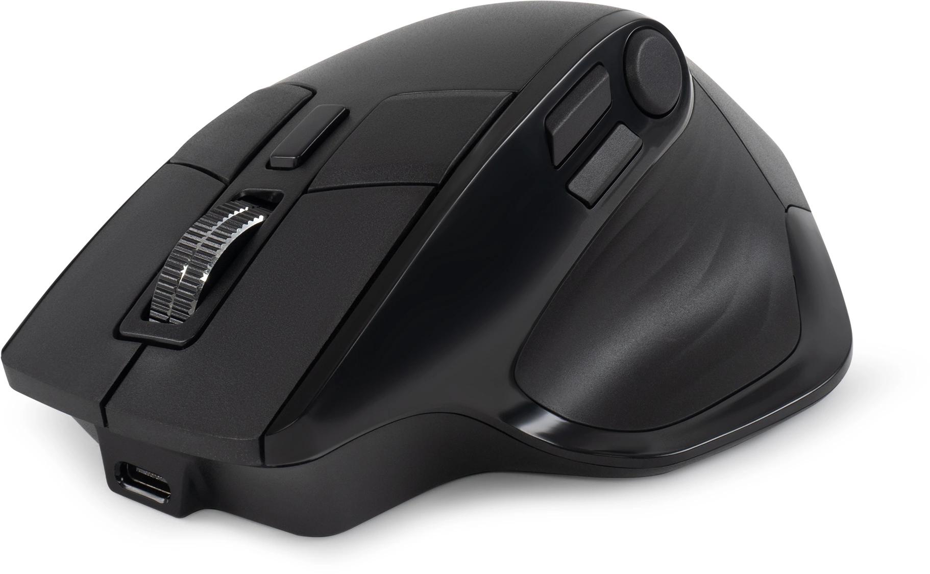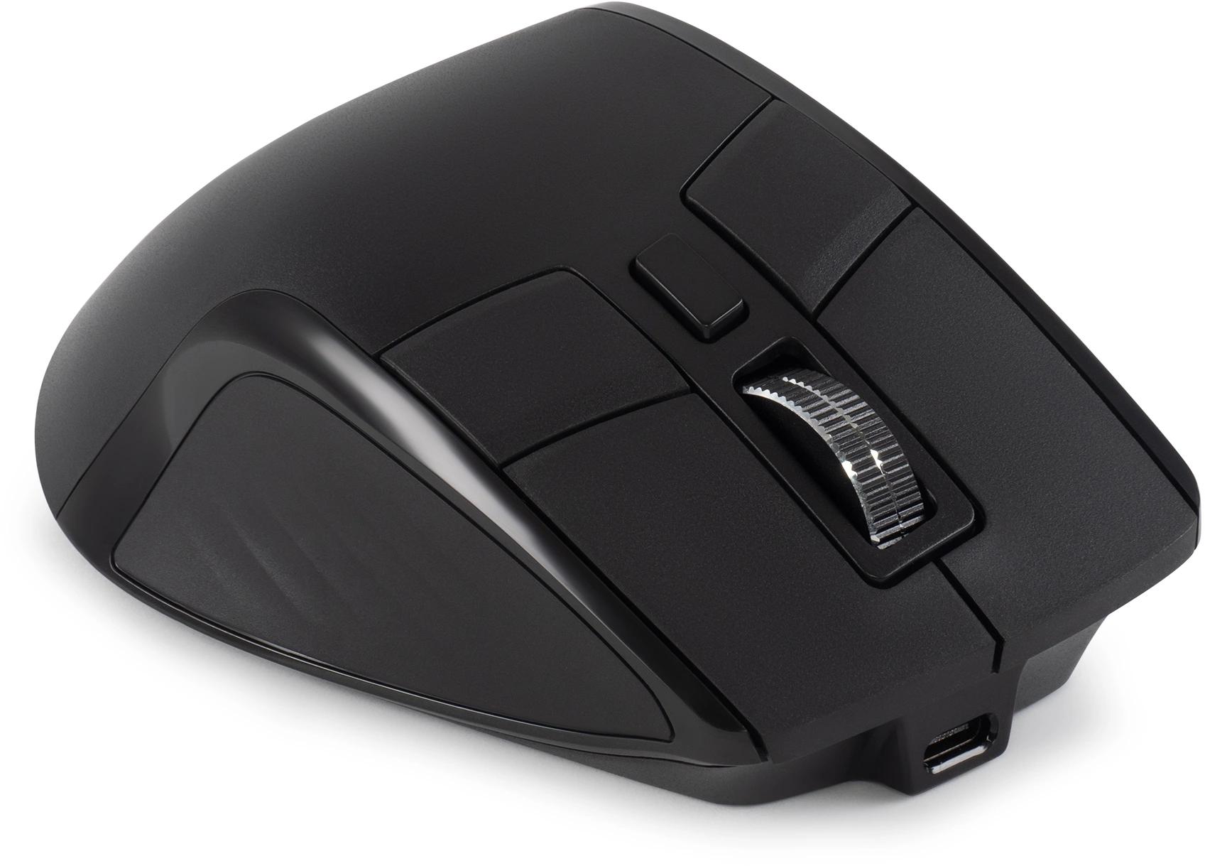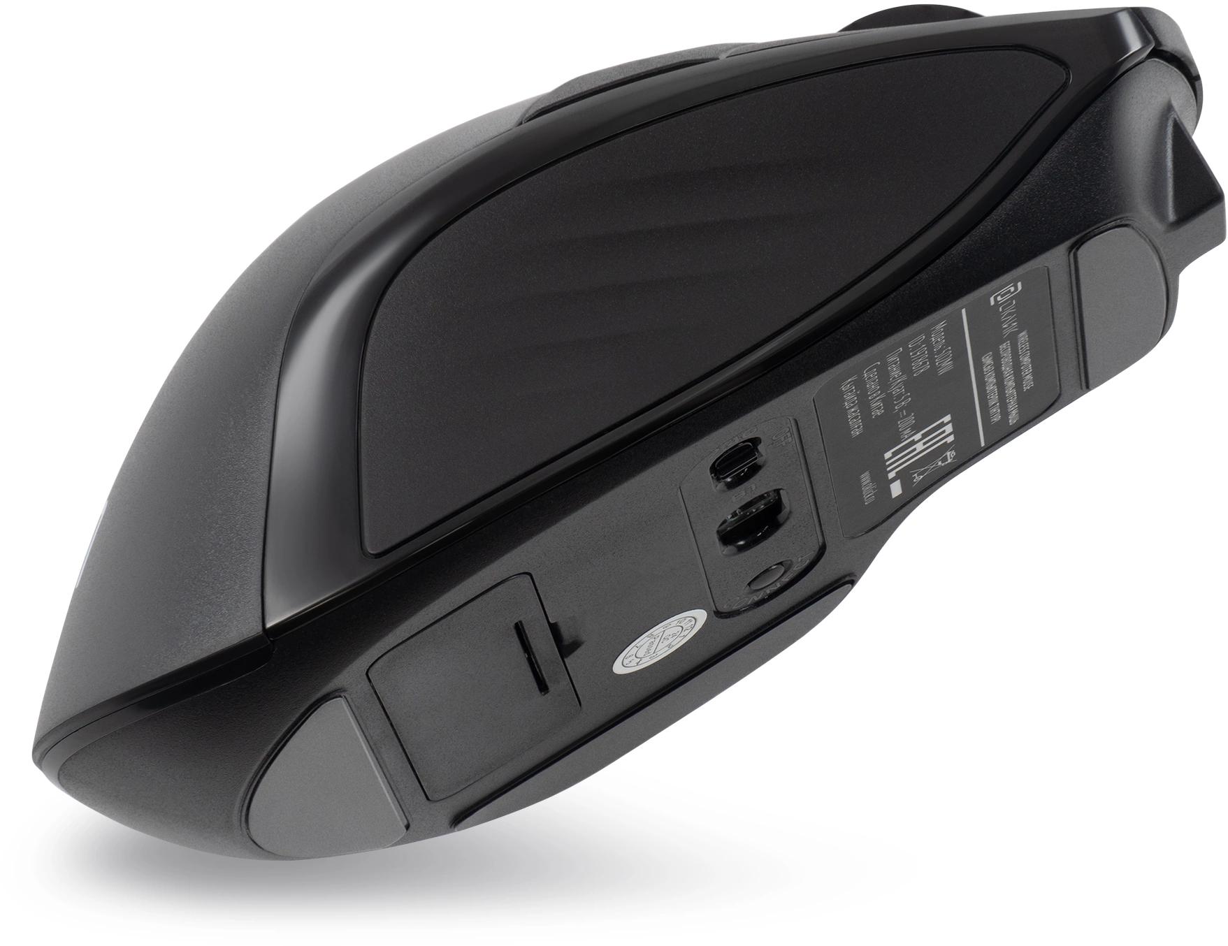 OLED дисплей, встроенные функции управления, в т.ч. переназначения кнопок, тефлоновые ножки, поддержка двух устройств, УФ матовое покрытие корпуса, эргономичная, поддержка Bluetooth, работа в проводном режиме, бесшумный клик, до 55 часов работы от аккумулятора
